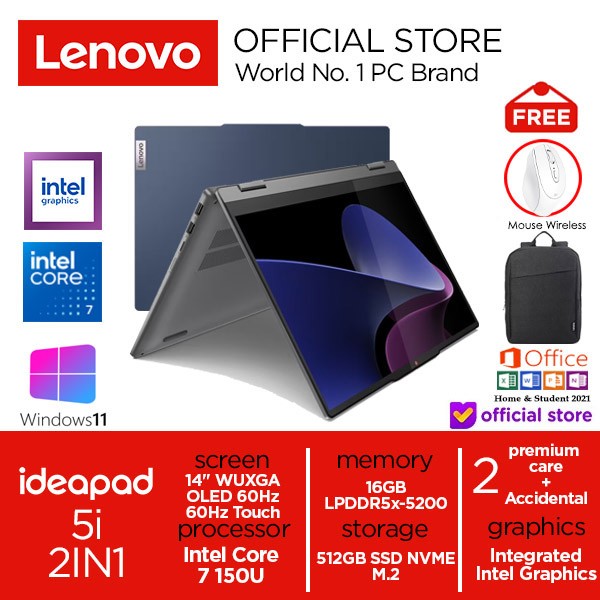 LENOVO IDEAPAD 5I 2IN1 INTEL 7 150U 512GB SSD 16GB OLED TOUCH WIN11 - LUNA GREY, NON ANTIGORES