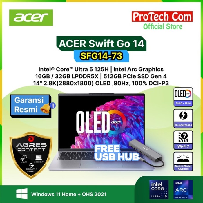 ACER SWIFT GO 14 SFG14-73 ULTRA 5-125H 512G 14" 2.8K OLED 90HZ W11 OHS - DDR5 16GB