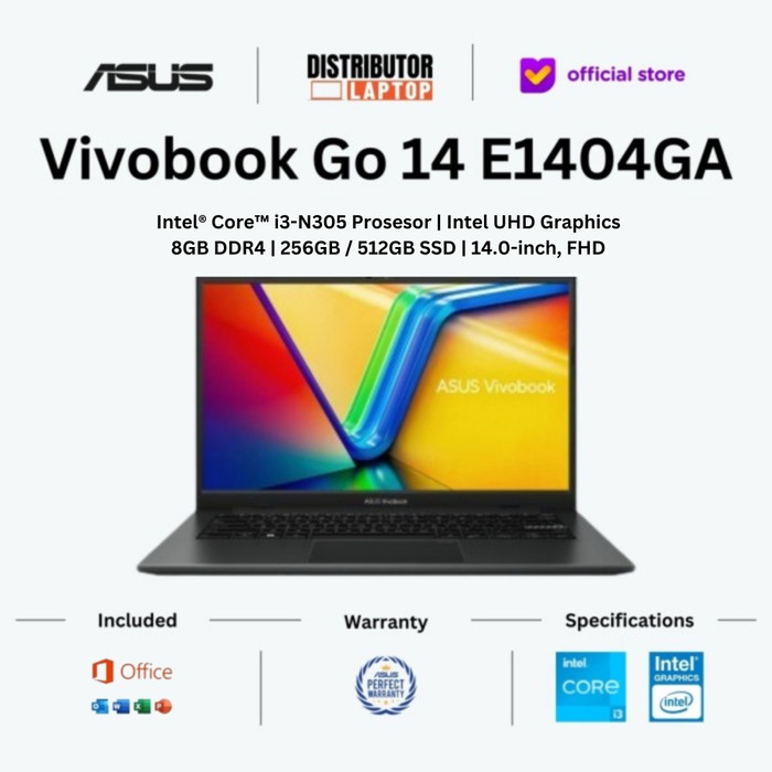 ASUS VIVOBOOK GO 14 E1404GA I3-N305 RAM 8GB 256GB 512GB SSD 14" FHD W11 - BLACK 512GB, NON BUNDLE
