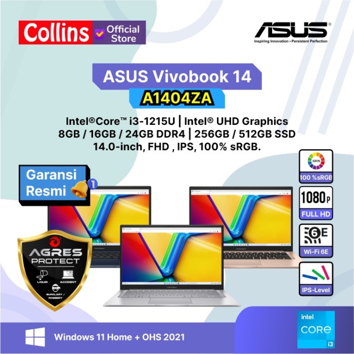 ASUS VIVOBOOK 14 A1404ZA I3-1215U 256/512GB 14" FHD SRGB 100 PERSEN W11 OHS - 8GB/256GB