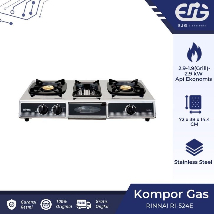 RINNAI RI 524 E KOMPOR GAS 2 TUNGKU GRILL PANGGANGAN a-p-i EKONOMIS