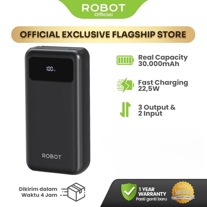 ROBOT Powerbank 30000 mAh Fast Charging 22.5W 3 Port USB Type C LED RT32 Original - Garansi Resmi 1 Tahun