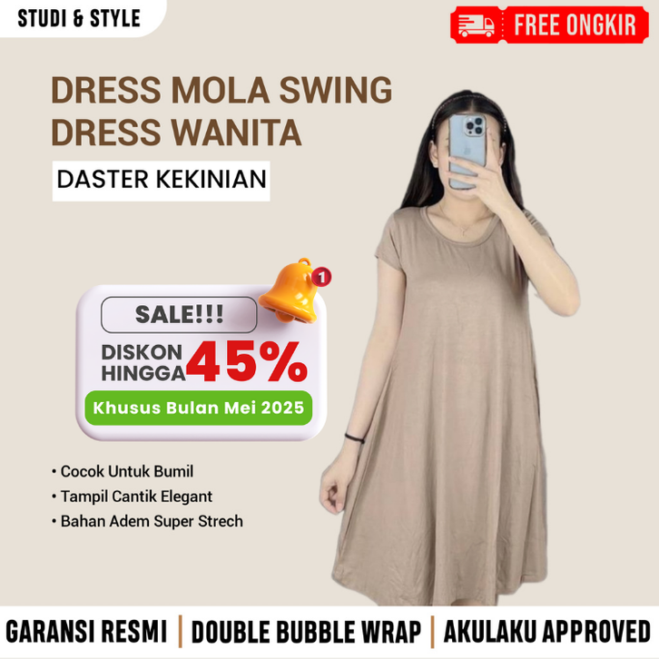 Dress Cewek Swing Dress Lengan Pendek Dress Wanita Babydoll Daster Kekinian Dress Bumil Dress Polos
