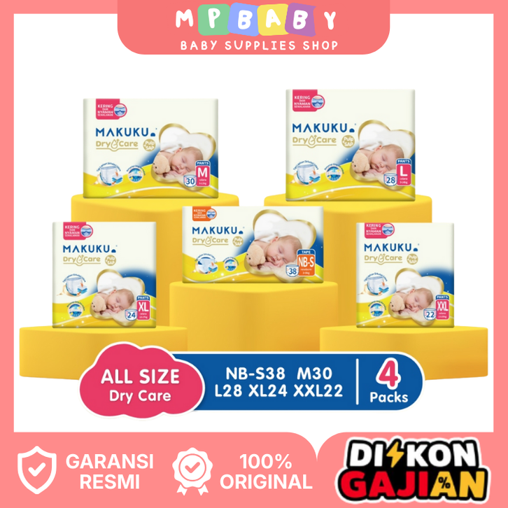 [4 PACK] POPOK BAYI MAKUKU DRY CARE DIAPERS CELANA PEREKAT NB-S M L XL XXL LEMBUT NYAMAN TIPIS ANTI BOCOR