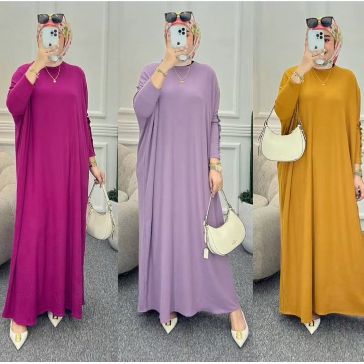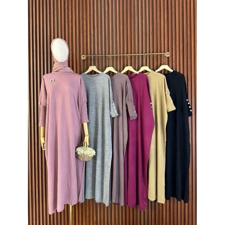 Dress Cewek Inara Knit Rajut Syila Gamis Maxi Wanita Model Kalong Batwing Jumbo Big Size Gamis Wanita Muslimah