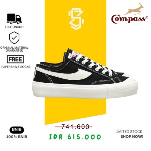 Sepatu Compass Gazelle Low Black White Gum Sneakers Pria Wanita Premium Quality Garde Original