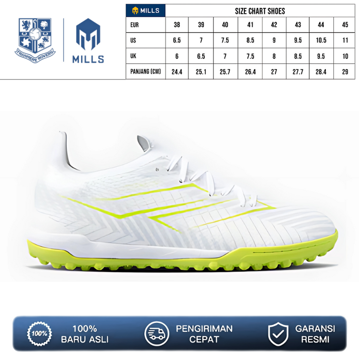 SEPATU FUTSAL MILLS HELIOS PRIME TURF WHITE / NEON GREEN 9001404