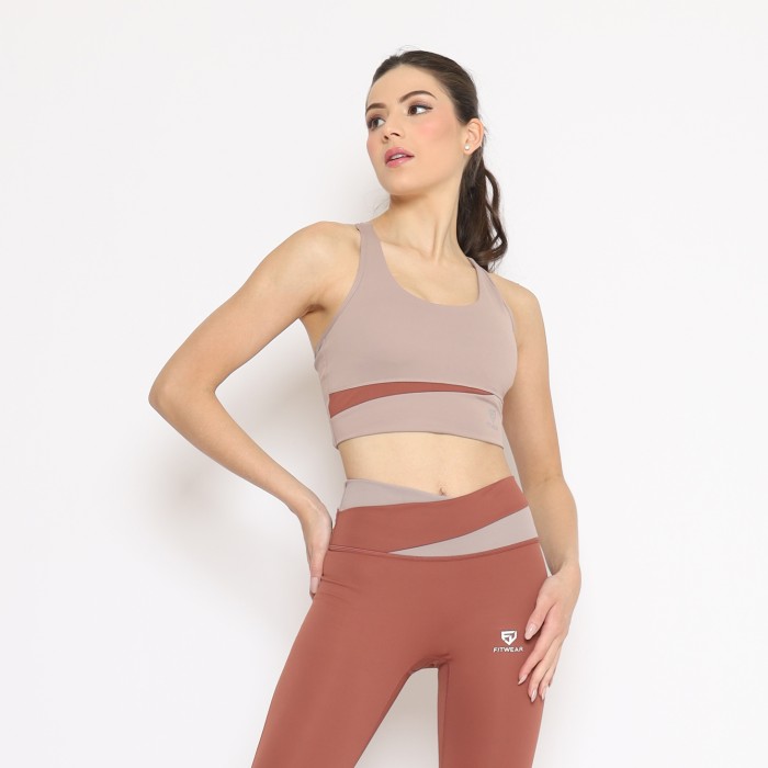 SPORTBRA OLAHRAGA WANITA FITWEAR HERIN BRA 2TONE SEAMLESS - LATTE-PURPLE, 2XL
