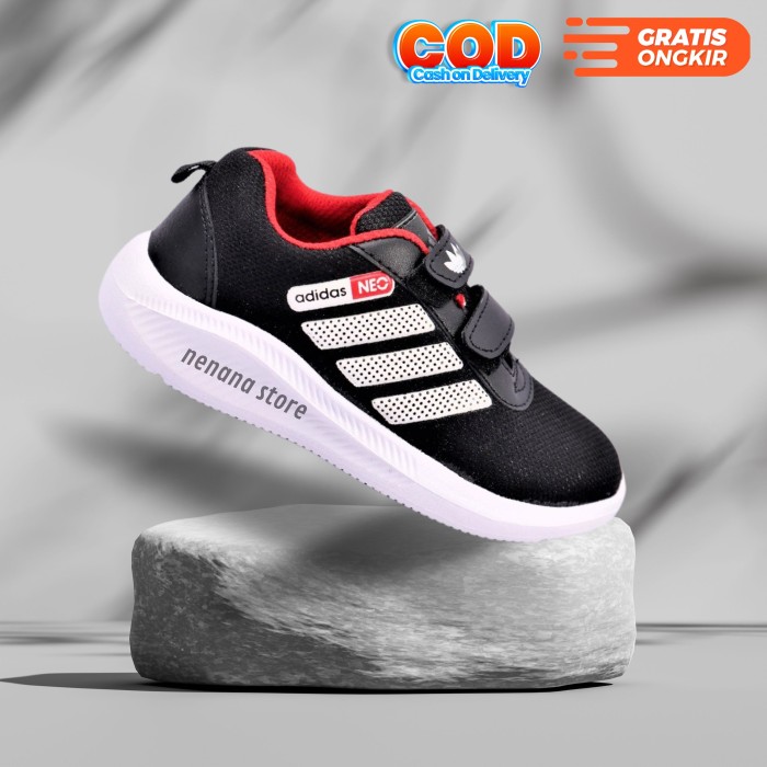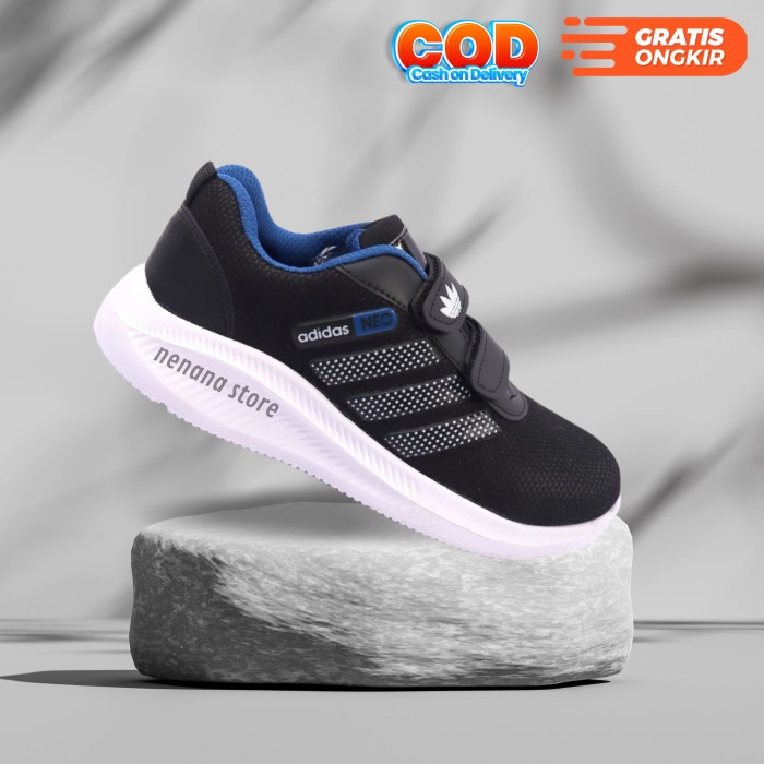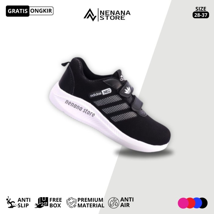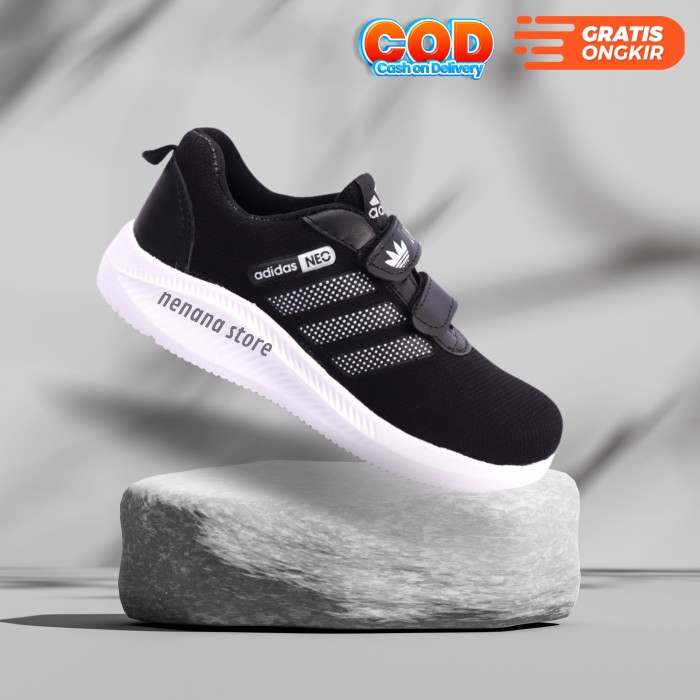 SEPATU ANAK SEKOLAH SNEAKERS LAKI LAKI PEREMPUAN , SEPATU PYLON - HITAM, 28
