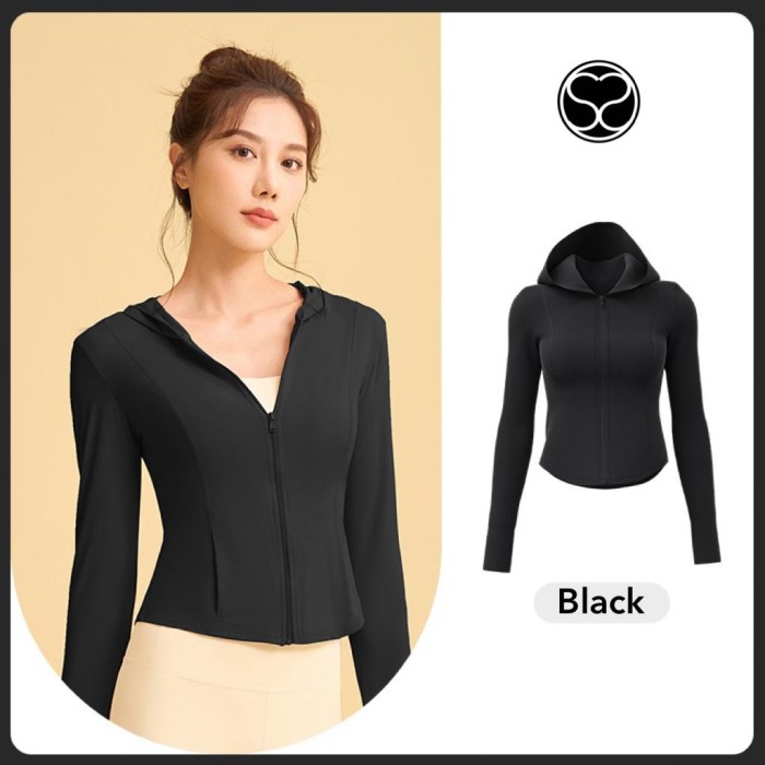 JACKET OLAHRAGA WANITA YOGA FITNESS - BLACK, XXL