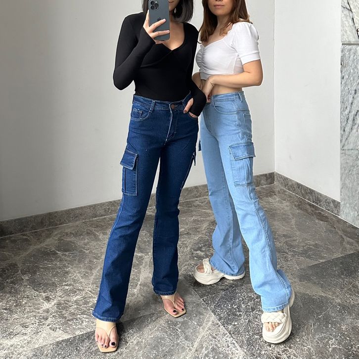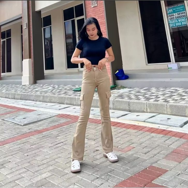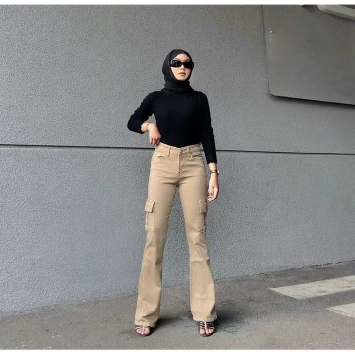 Celana Cutbray Jeans Wanita Highwaist Celana Cargo Wanita Jumbo Highwaist Celana Kargo Multi Saku Wanita Jumbo Kekinian