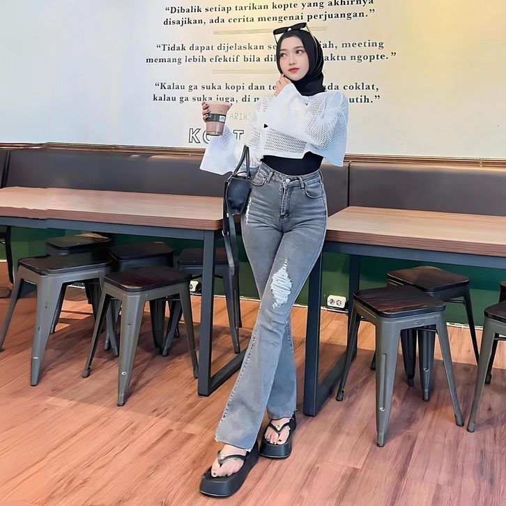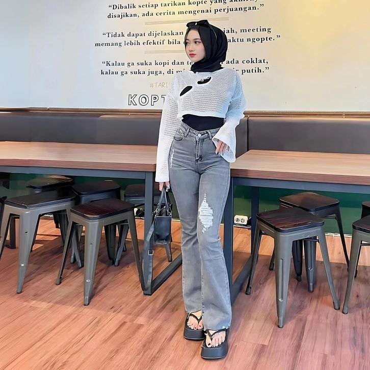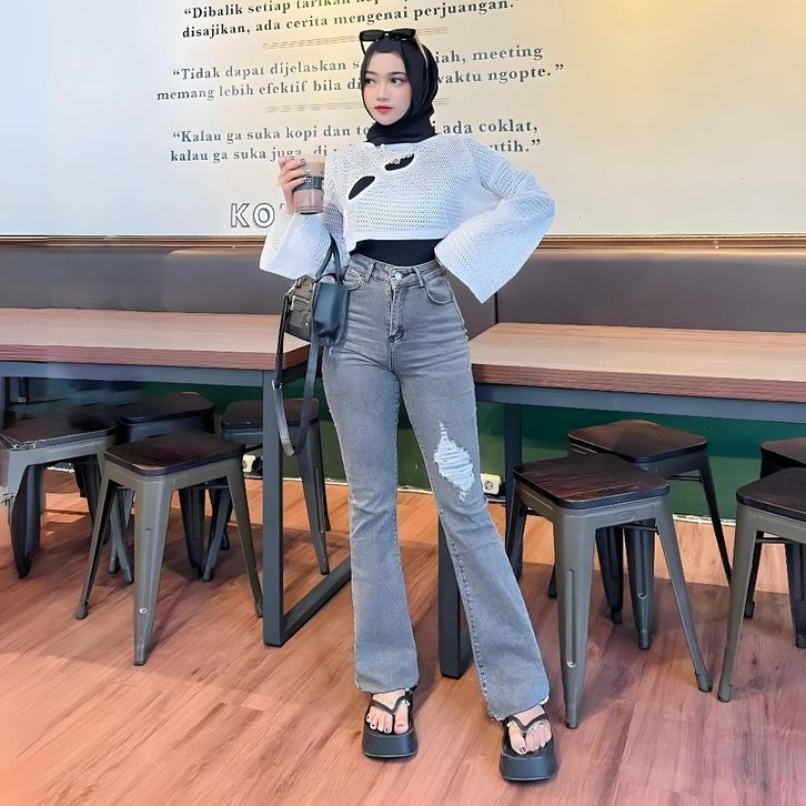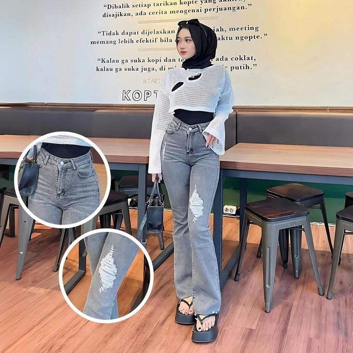 Celana Cutbray Jeans Wanita Jumbo Celana Panjang Jeans Wanita Sobek Lutut Highwaist Celana Wanita Kekinian Terbaru