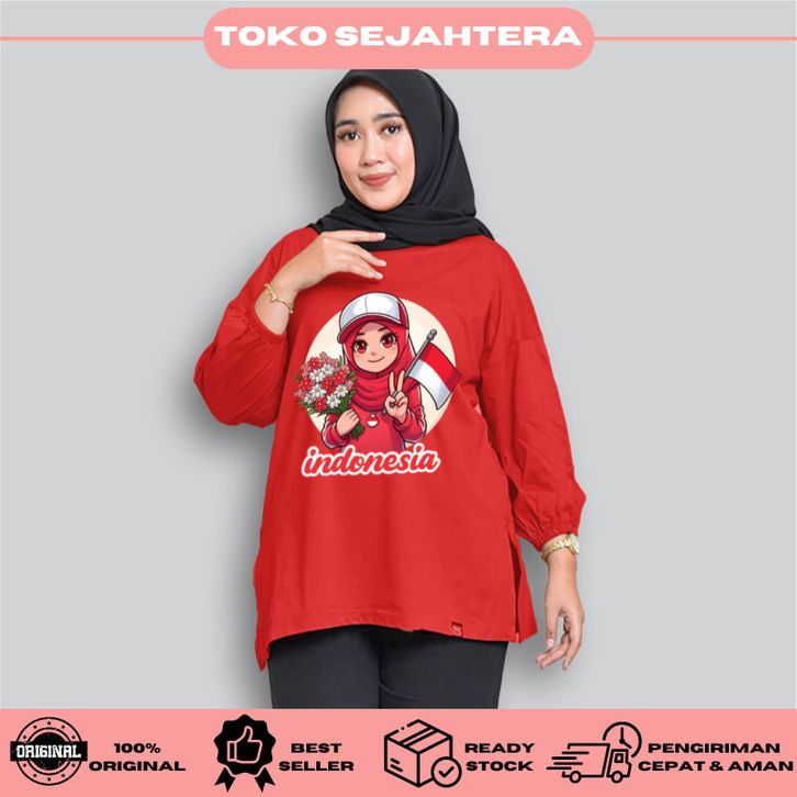 Atasan Wanita Agustusan Merah Putih Kemerdekaan Indonesia Premium Lengan Balon