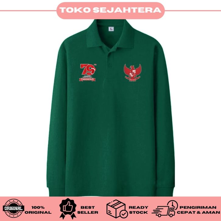 Kaos kerah pria lengan panjang distro seragam hari KEMERDEKAAN 17 AGUSTUS HUT RI se INDONESIA