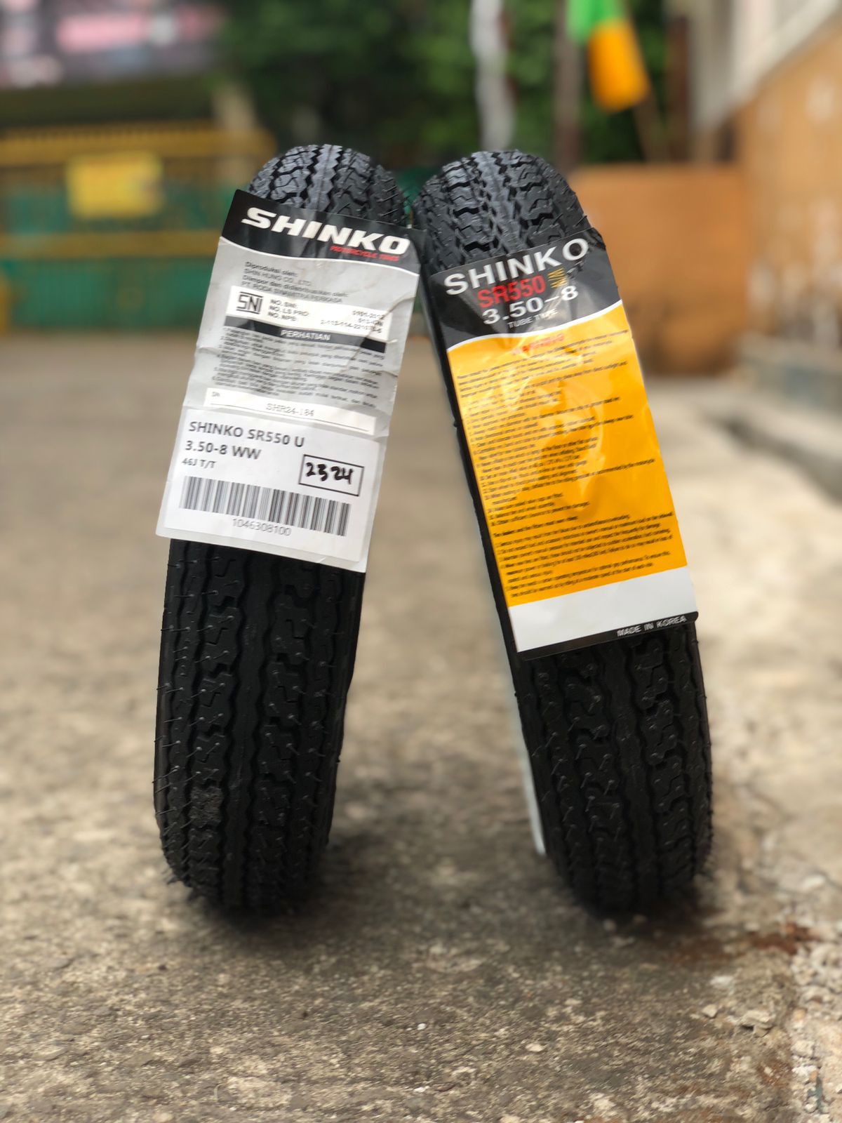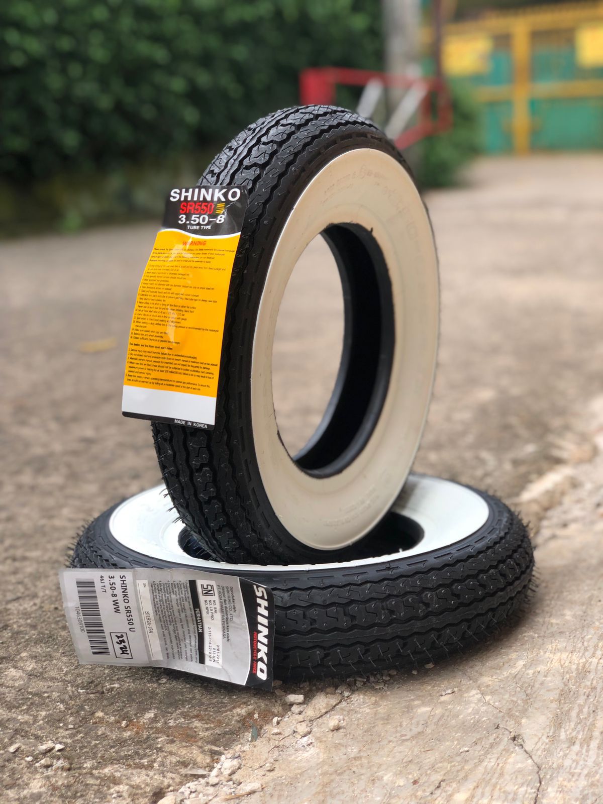 Sepasang / Satuan Ban Motor Ring 8 Shinko SR550 3.50-8 White White Wall Non Tubeless Vespa Classic Super Pts Small Frame