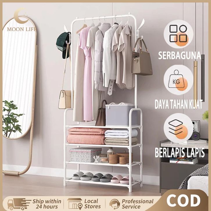 Rak Gantung Baju Stand Hanger Gantung Clothes Hanging Rack Rak Sepatu 3 Susun Lemari Pakaian Sederhana Rak Penyimpanan P