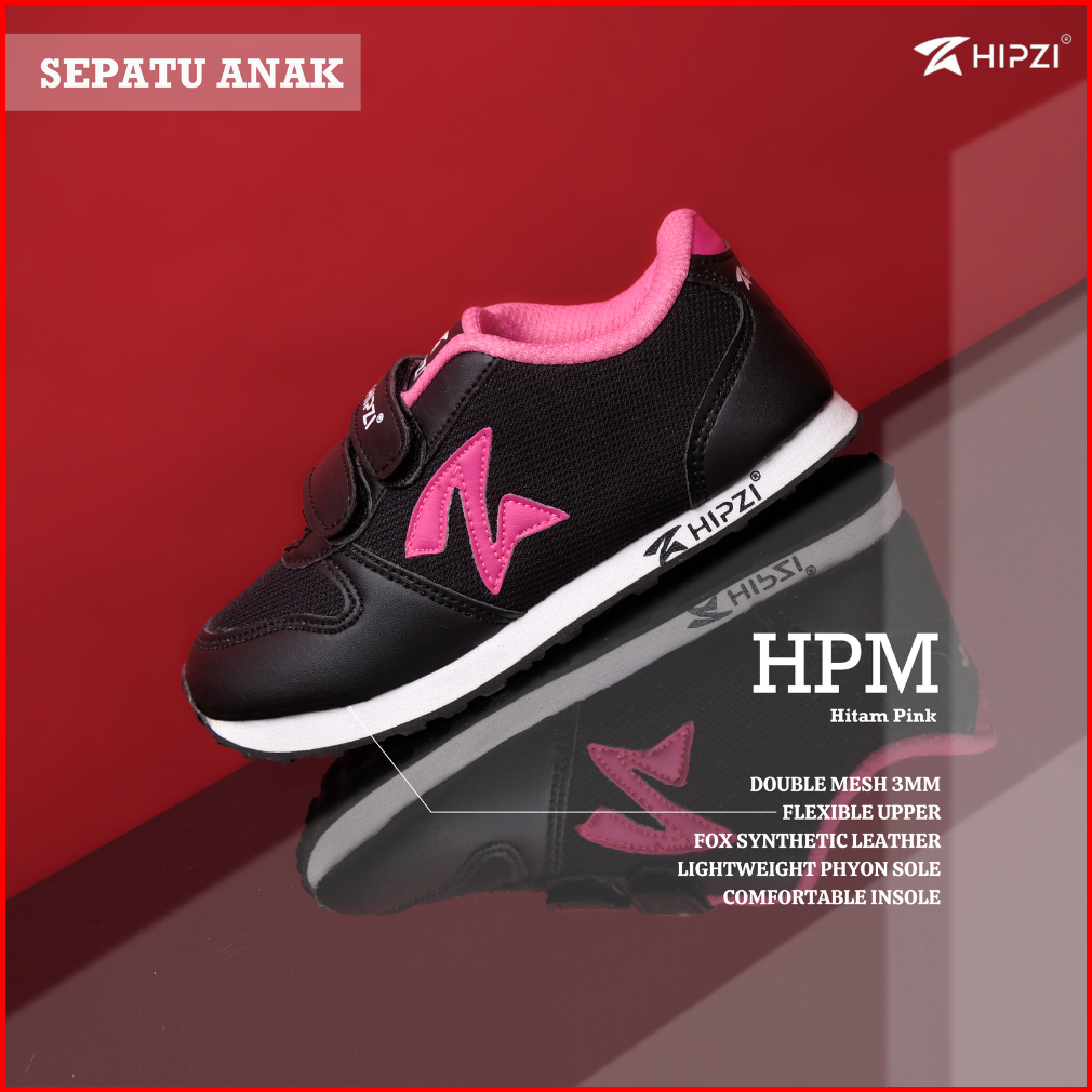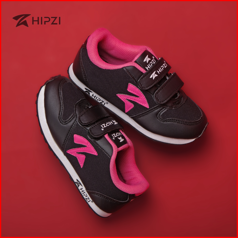 Hipzi Sepatu Anak Umur 1 - 10 Tahun Sneaker Sport Olahraga Laki Laki Perempuan Tk Sd Paud Hpm Hitam Pink