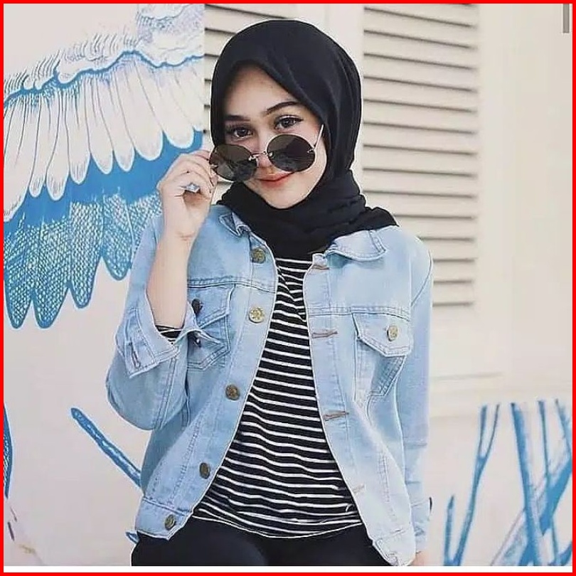 Jaket Jeans Denim Biondy Wanita Crop Cewek Kekinian Snow Black Sandwash Hitam Oversize Premium Quality
