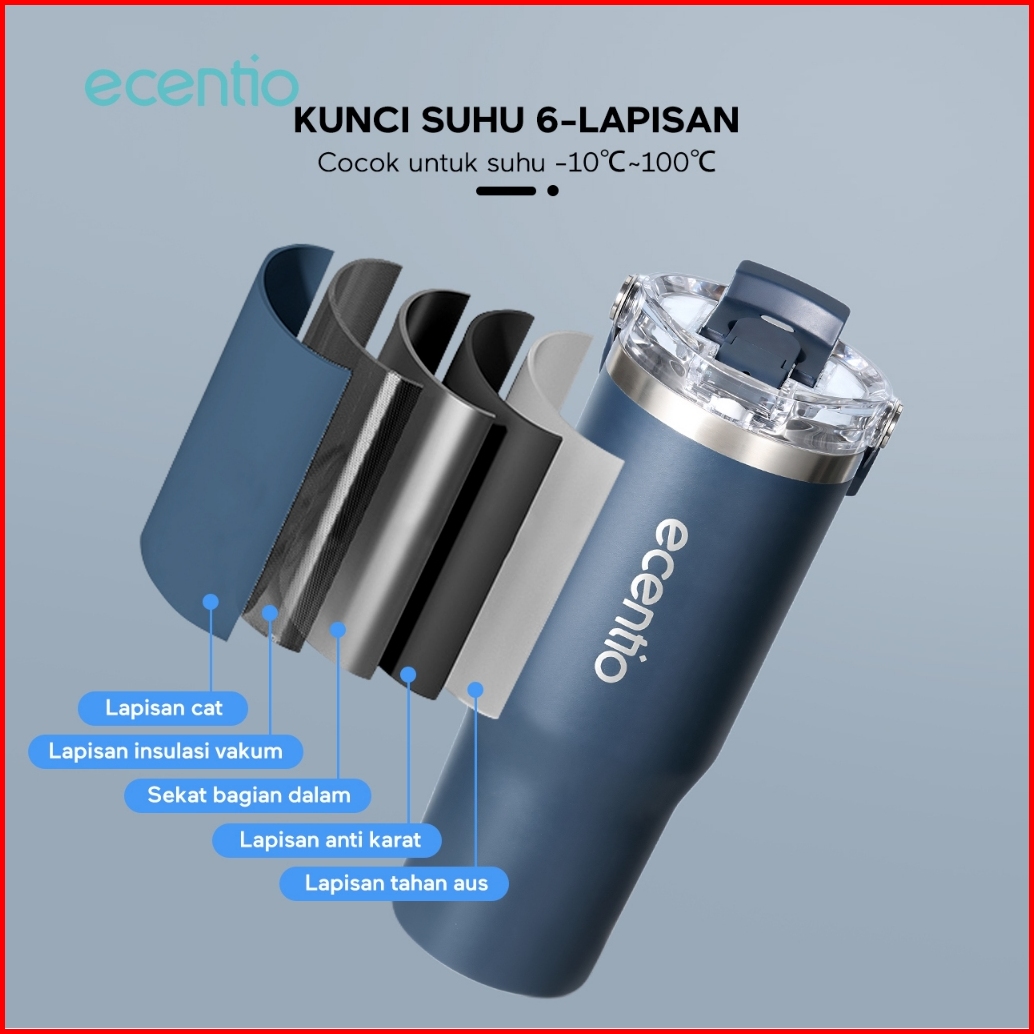Ecentio Foodi Tumbler Minum Stainless 900ml Premium Botol Minum Aesthetic Besar