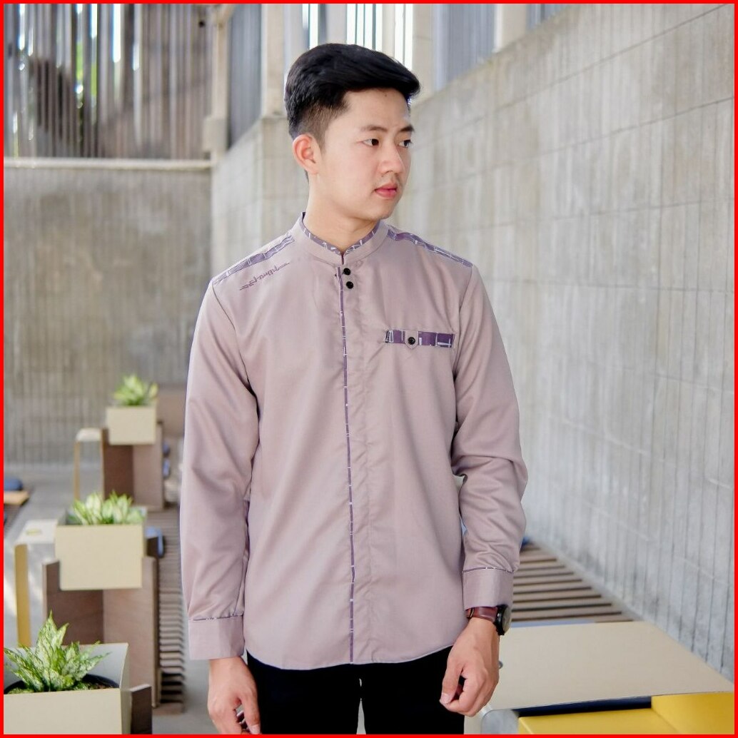 Baju Koko Pria El Rumi Lengan Panjang Berkombinasi Batik Motif New Yisunsin Lilac Terbaru