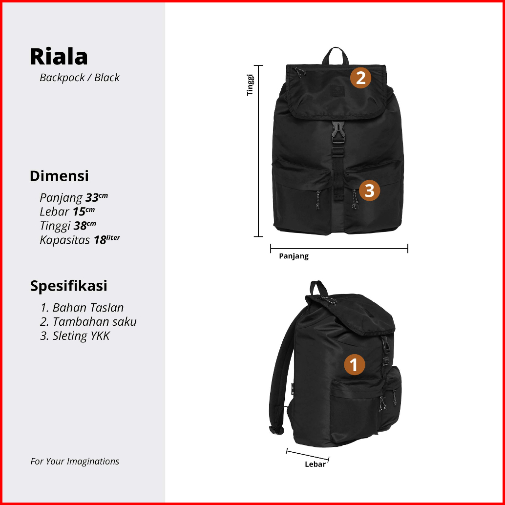 Fertig - Riala Black - Tas Ransel Pria Wanita - Backpack Serut - Tas Sekolah - Muat Untuk Laptop Ukuran 15 5