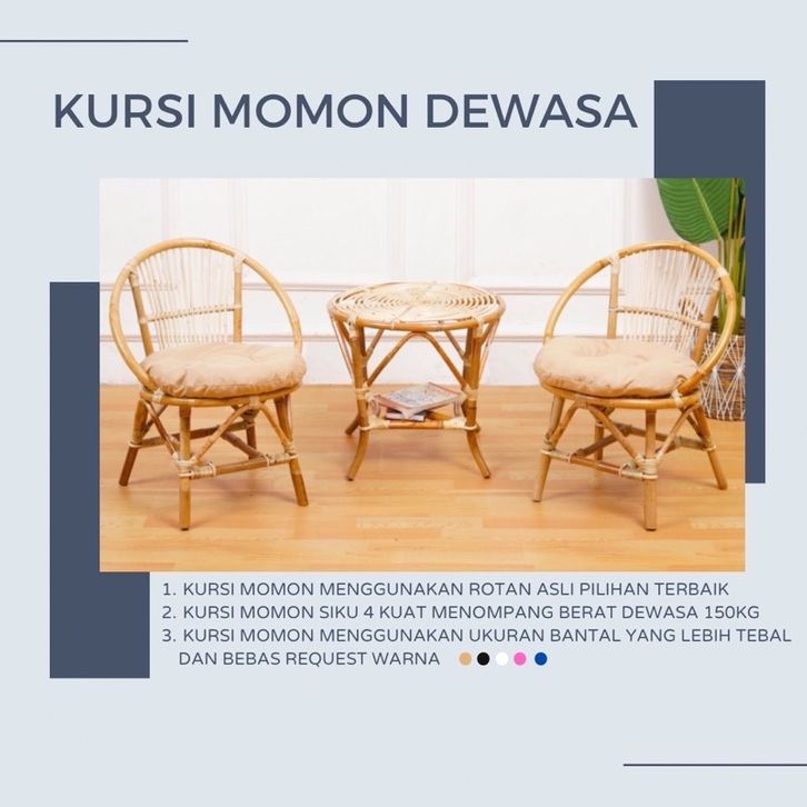 KURSI TERAS MOMON ROTAN DAN MEJA 1 SET / KURSI ROTAN TERAS / KURSI TAMU ROTAN ASLI FINISHING