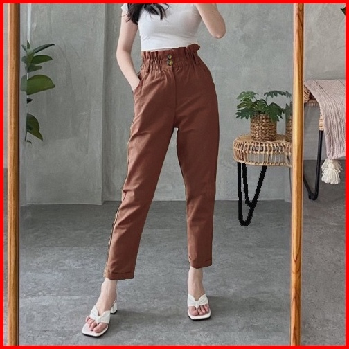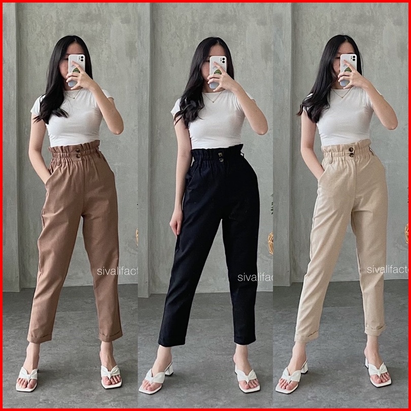 Yuta Pants - Celana Linen Higwaist Bahan Rami Linen 2235 - Linen Pant Celana Kantor Wanita
