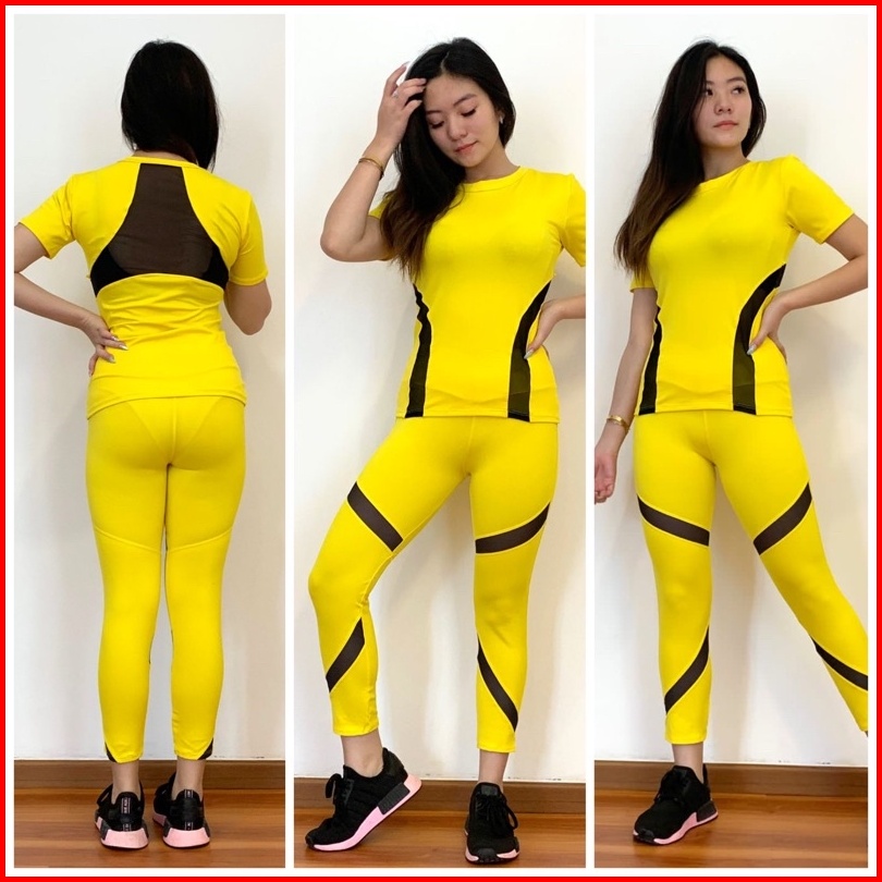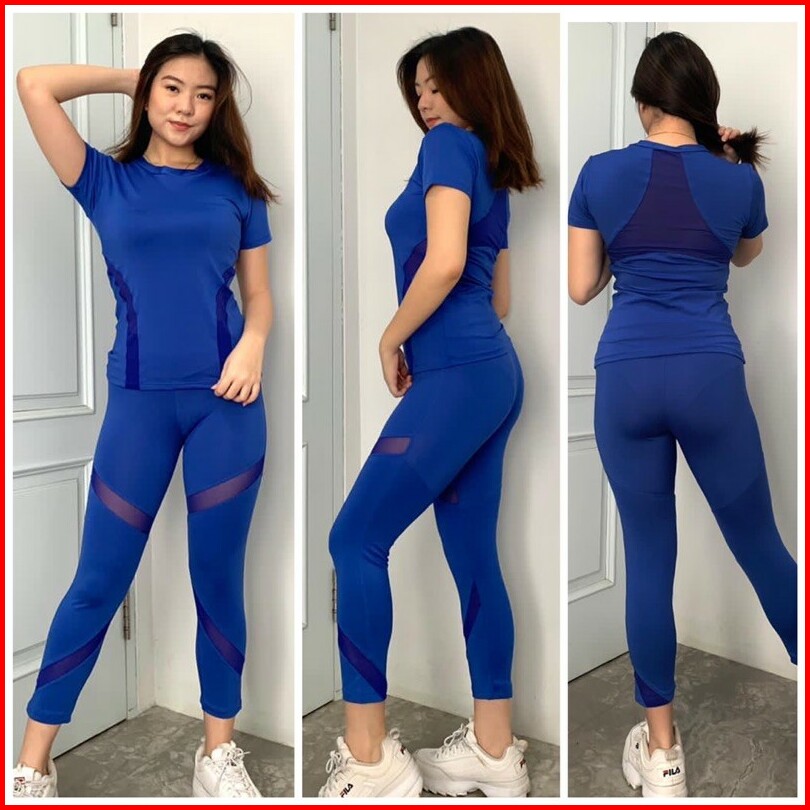 Setelan Senam Aerobik Zumba Yoga Gym Fitness Model Kombinasi Tile-legging 7 8