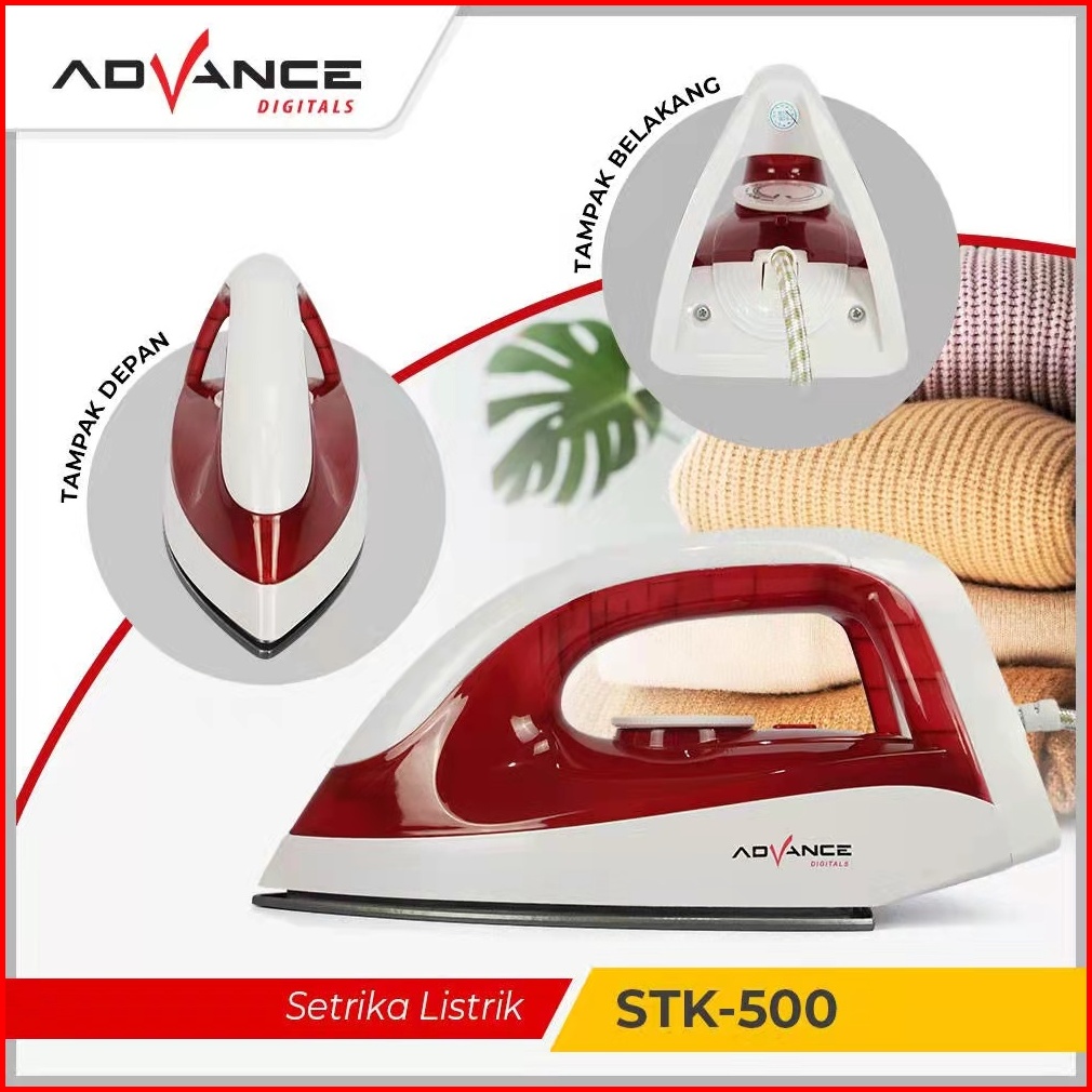 Advance Setrika Listrik Anti Lengket Stk-500 Hemat Listrik 350 Watt Garansi Resmi 1 Tahun