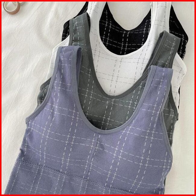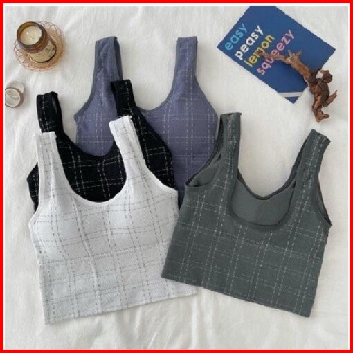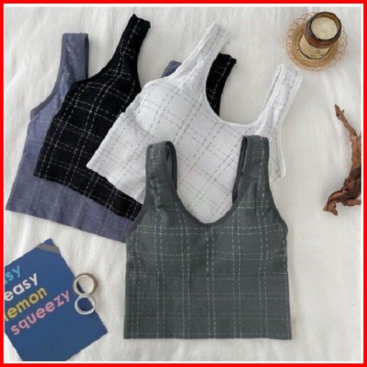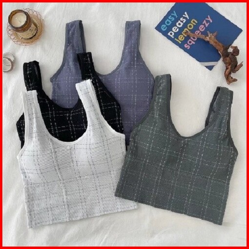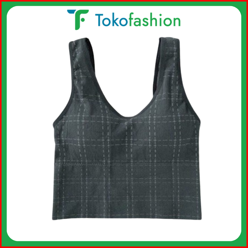 Tokofashion Tanktop Wanita Motif Kotak Bra Wanita Model Pakaian Dalam Wanita Crop Top Rajut Br864