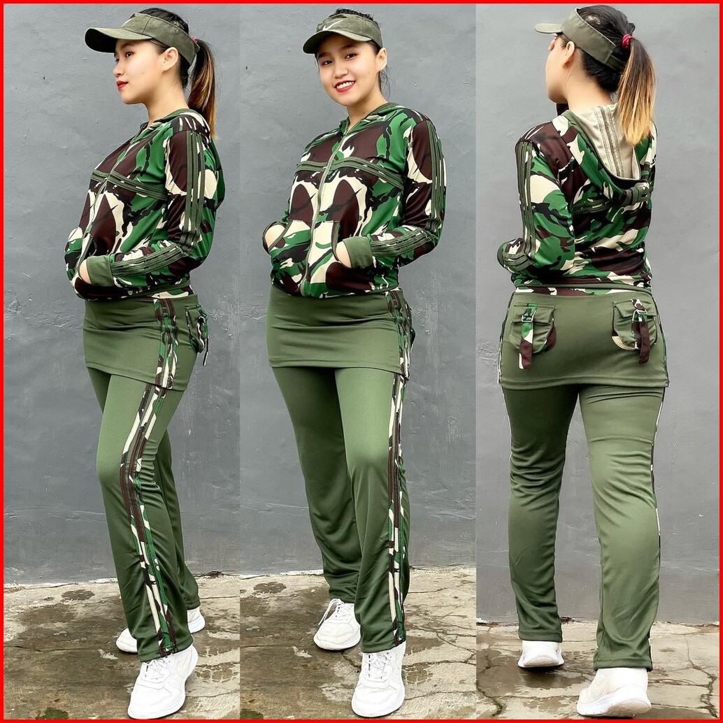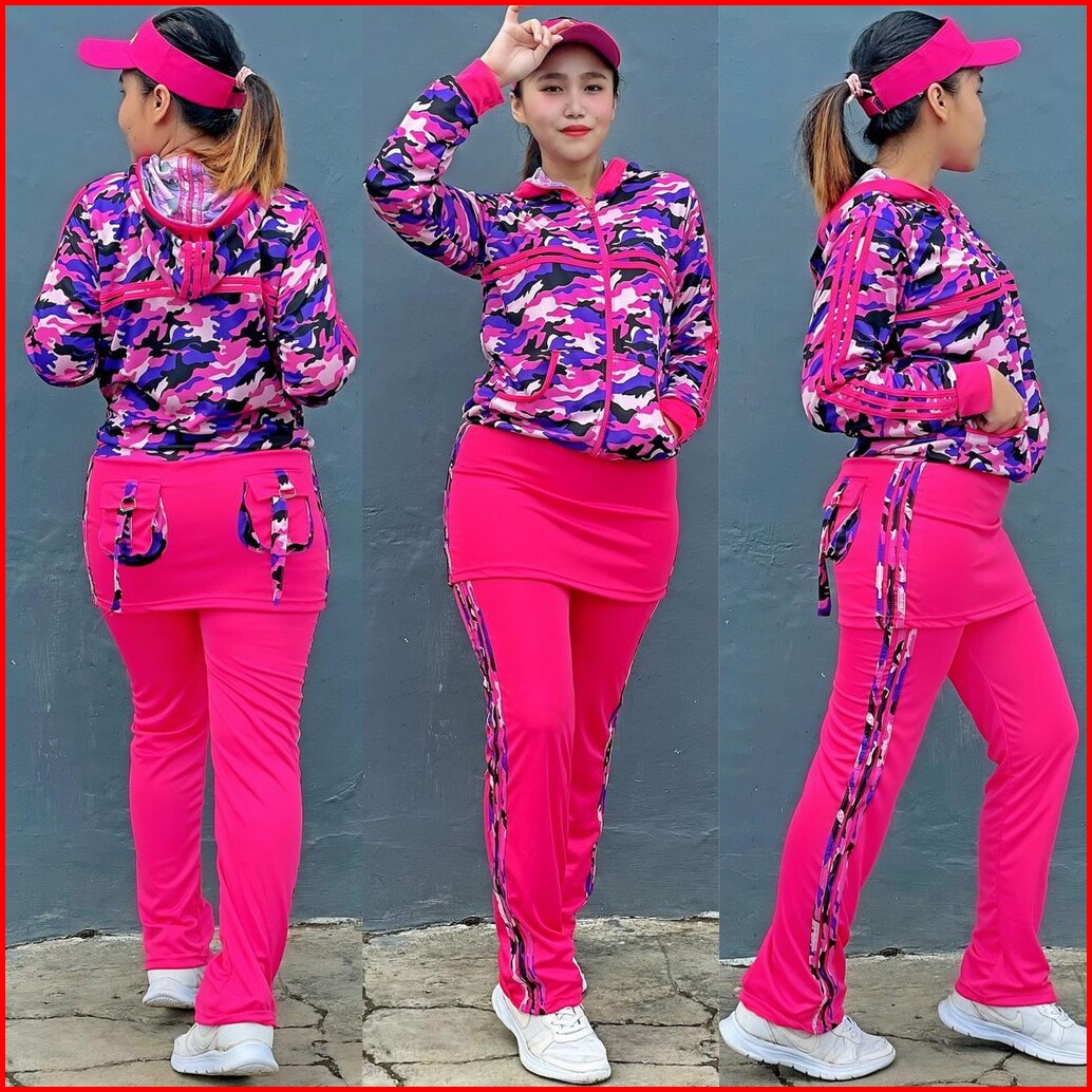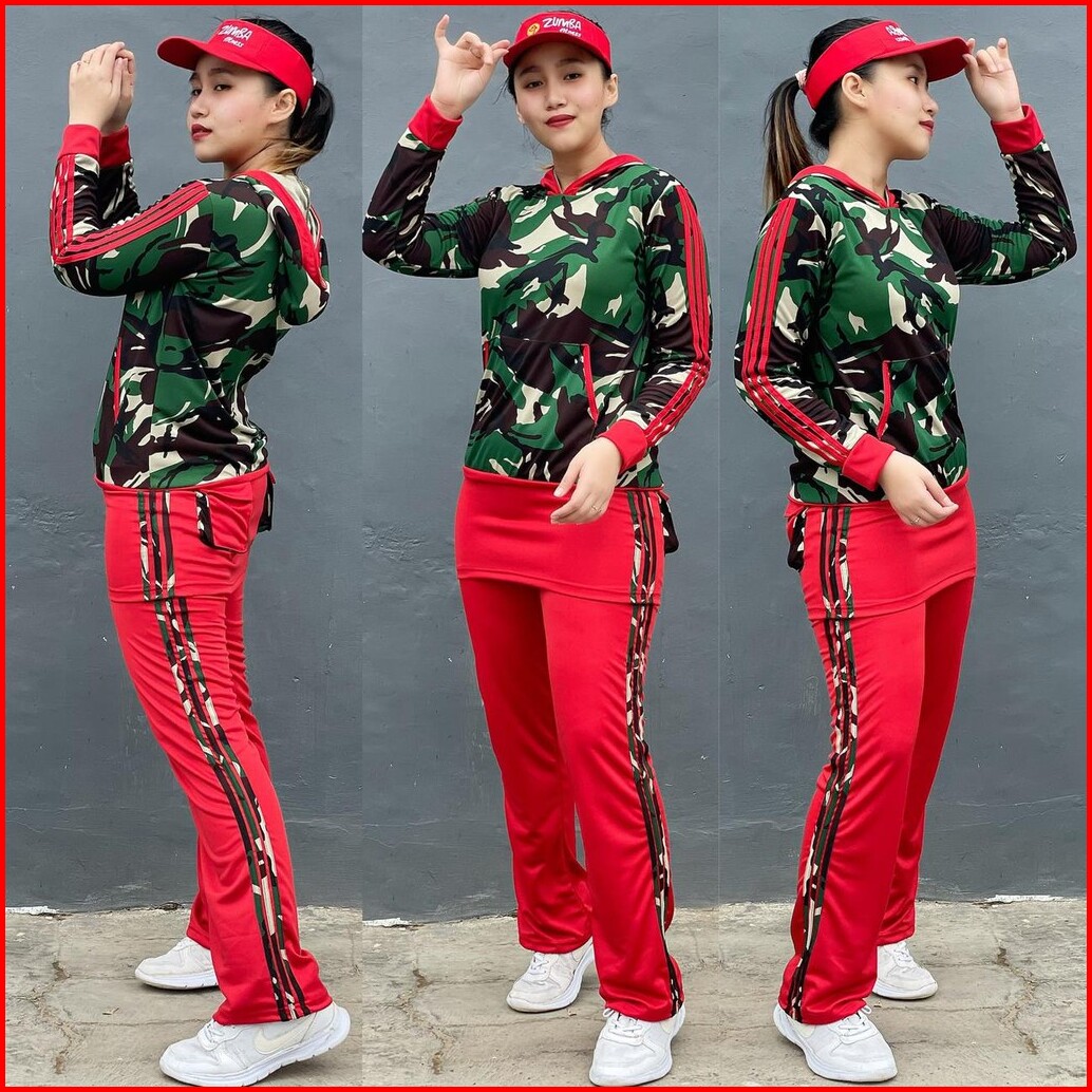 Setelan Baju Senam Aerobic Training Zumba Gym Fitness Dry-fit Army Rok Series