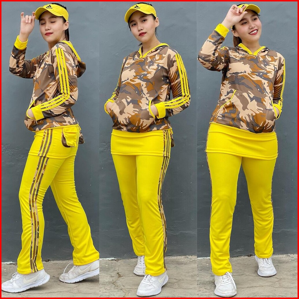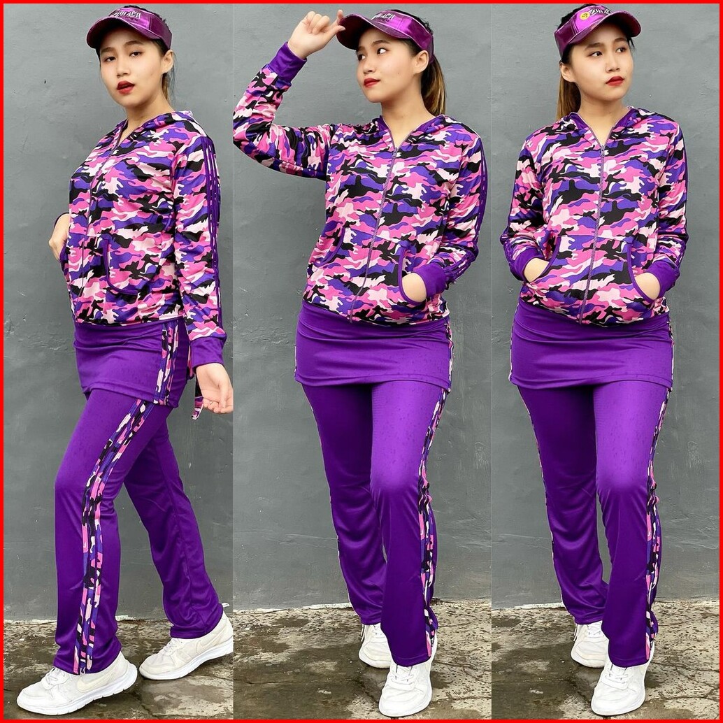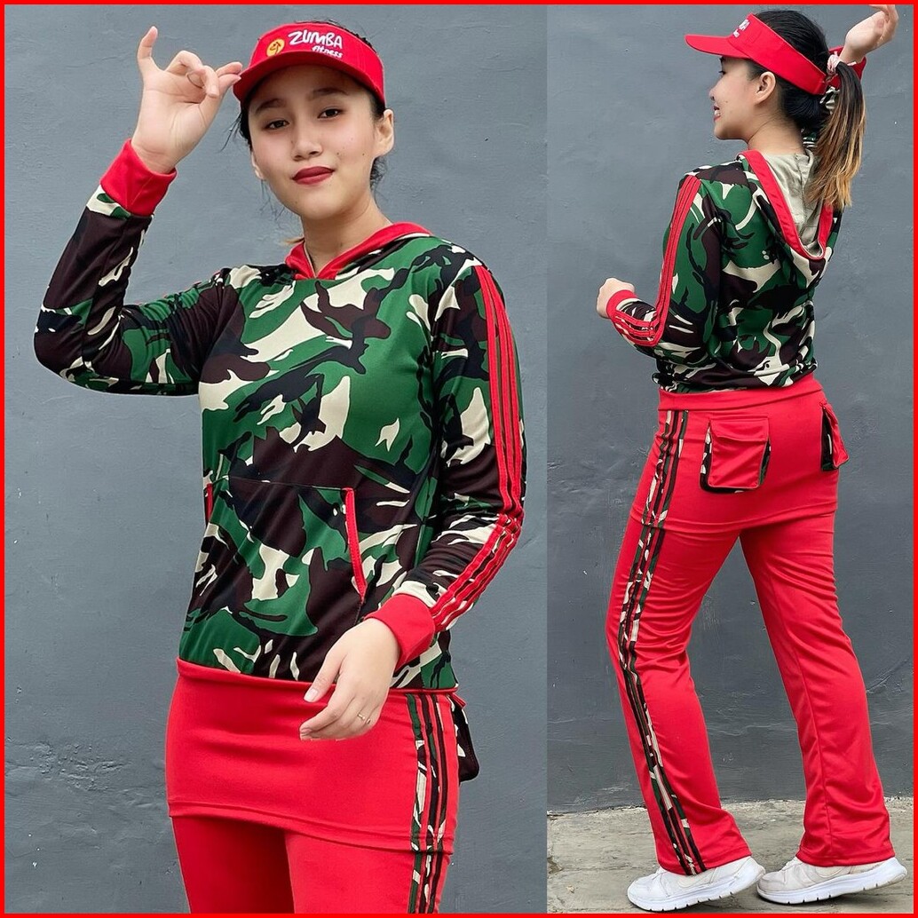 Setelan Baju Senam Aerobic Training Zumba Gym Fitness Dry-fit Army Rok Series