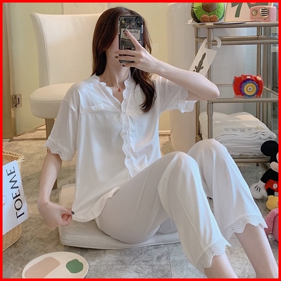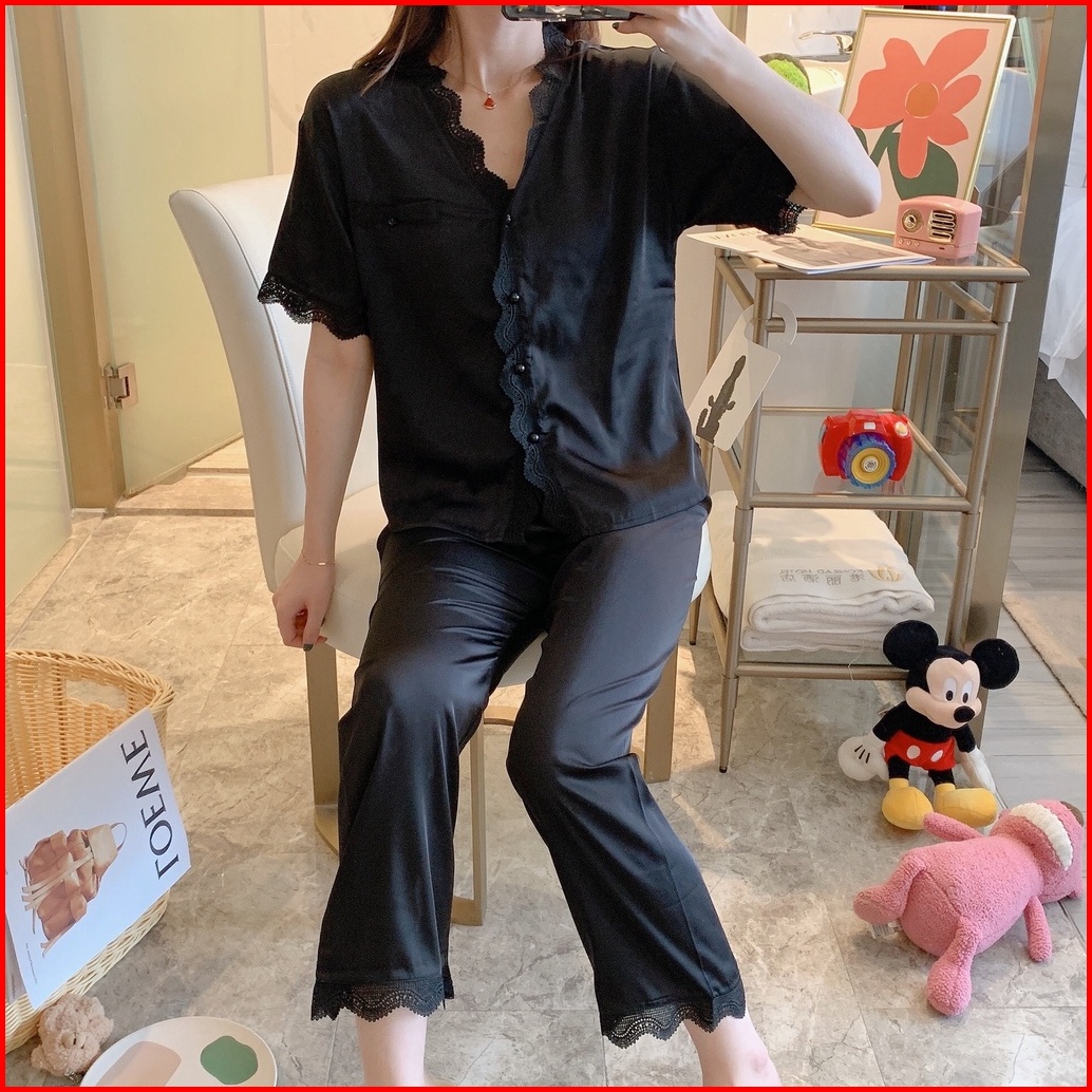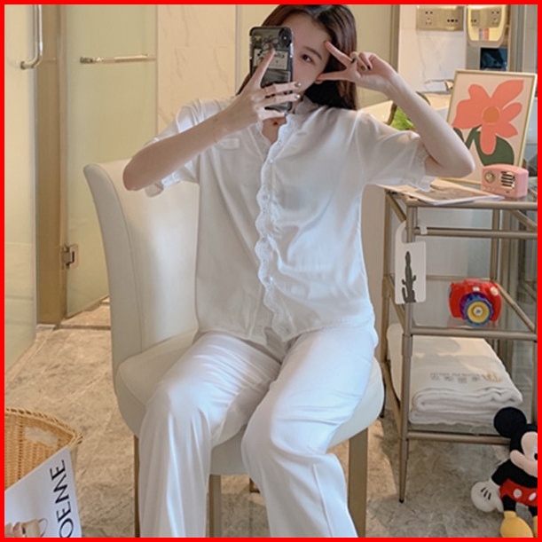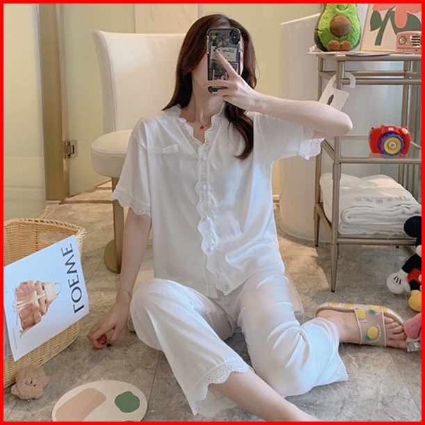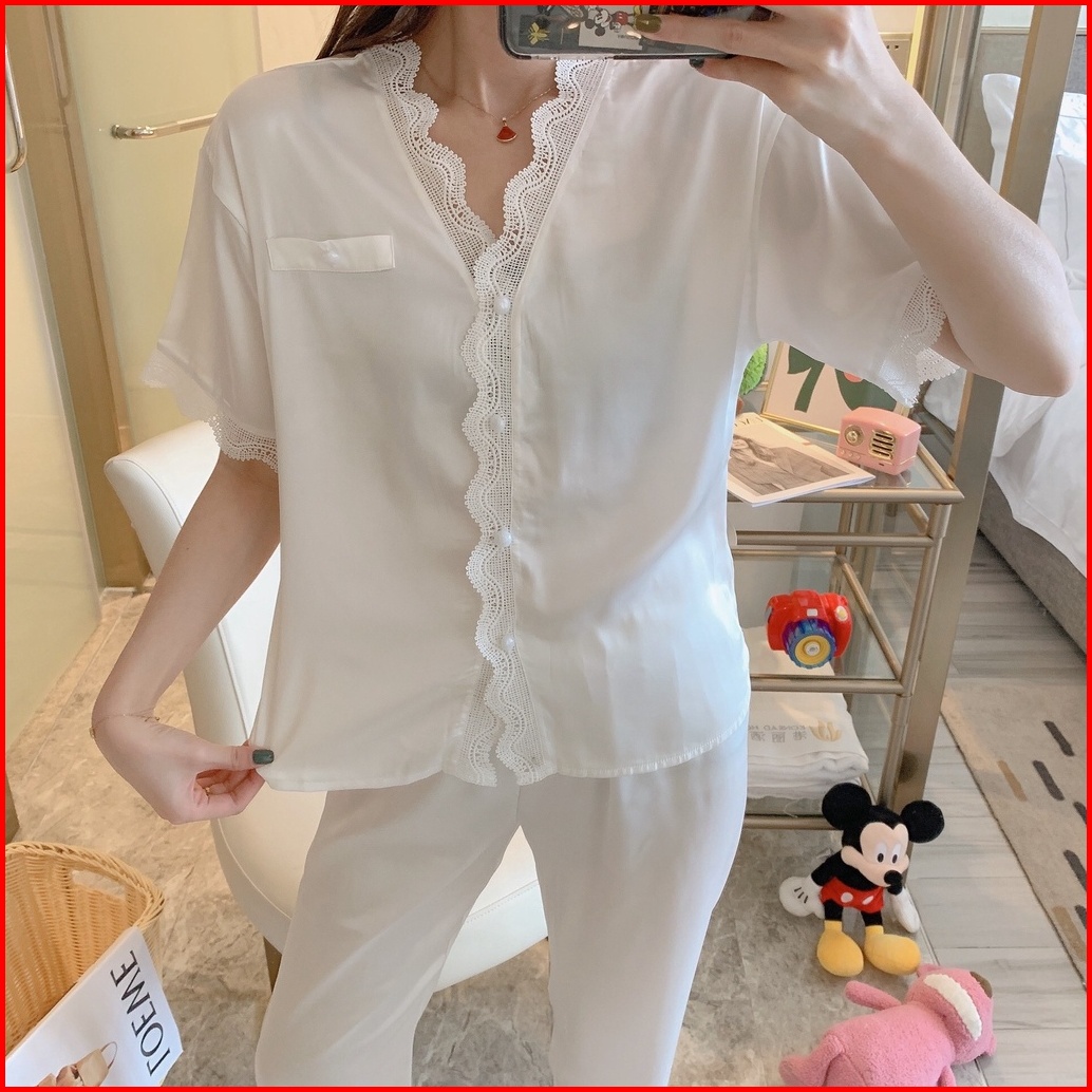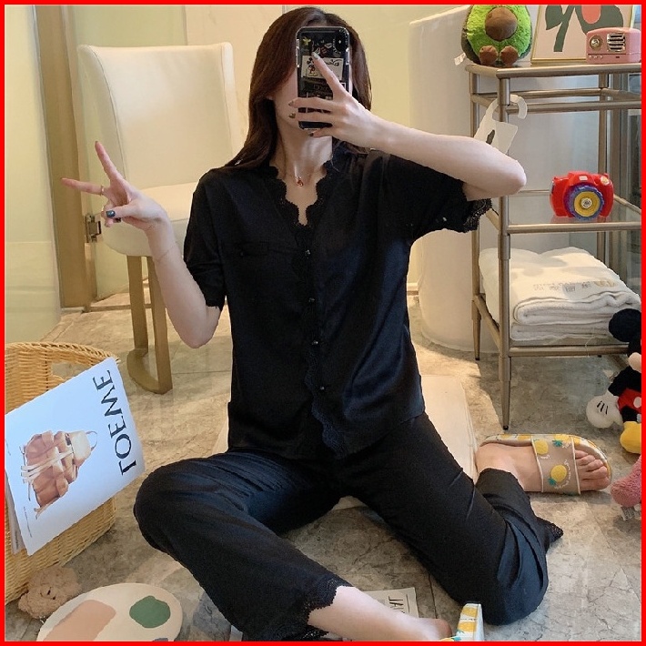 2023 Piyama Wanita Baru Sutra Sutra Lengan Pendek Setelan Lengan Pendek Pakaian Rumah