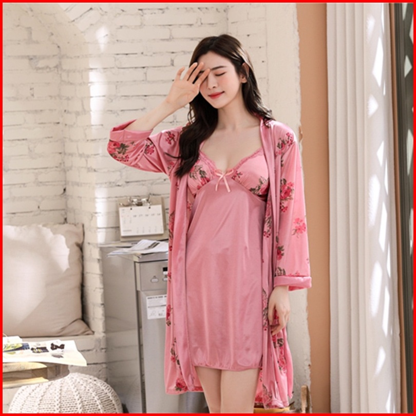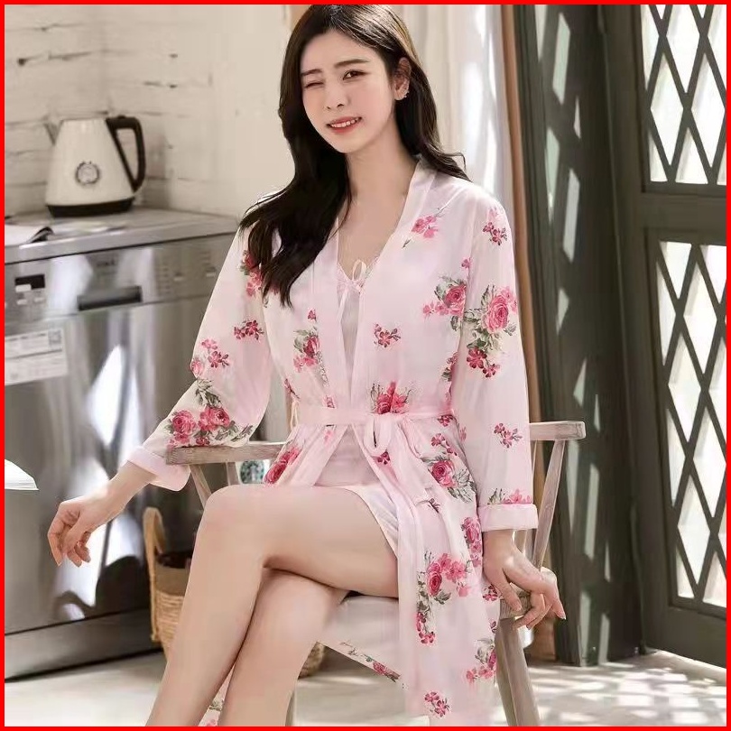 Baru Piyama Lengan Panjang Sutra Es Tipis Versi Korea Dua Potong Pakaian Rumah Wanita