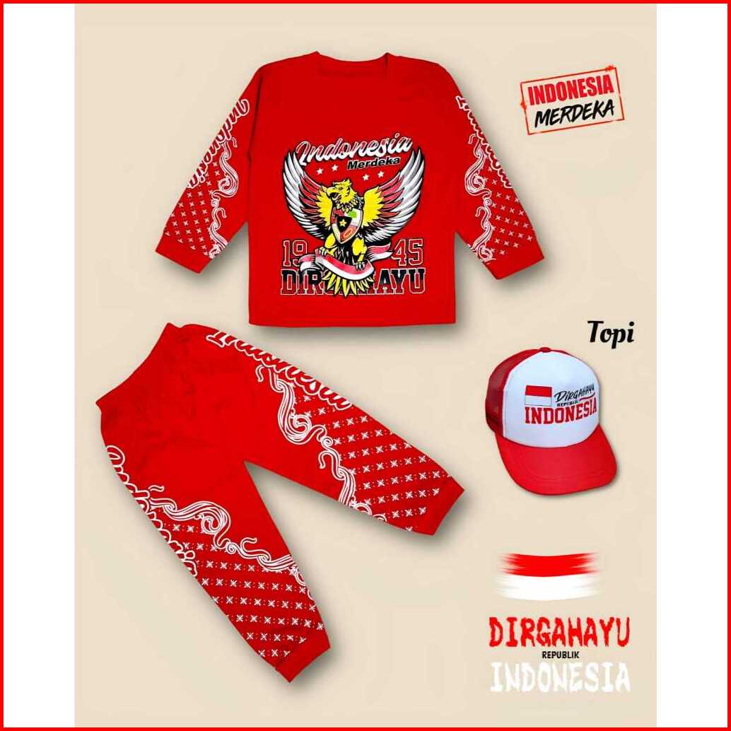 Setelan Lengan Panjang Indonesia Garuda Batik Free Topi