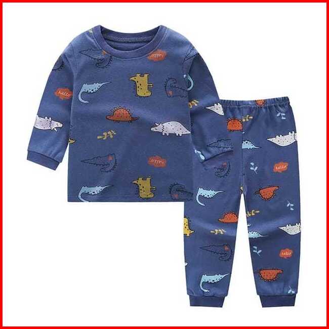 Baju Tidur Anak Dinosaurus Full Print Biru