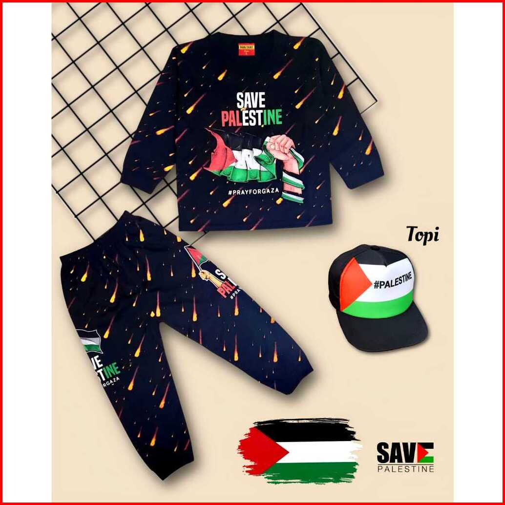 12.12 Palestine Setelan Baju Anak Lengan Panjang Bisa Tambah Topi