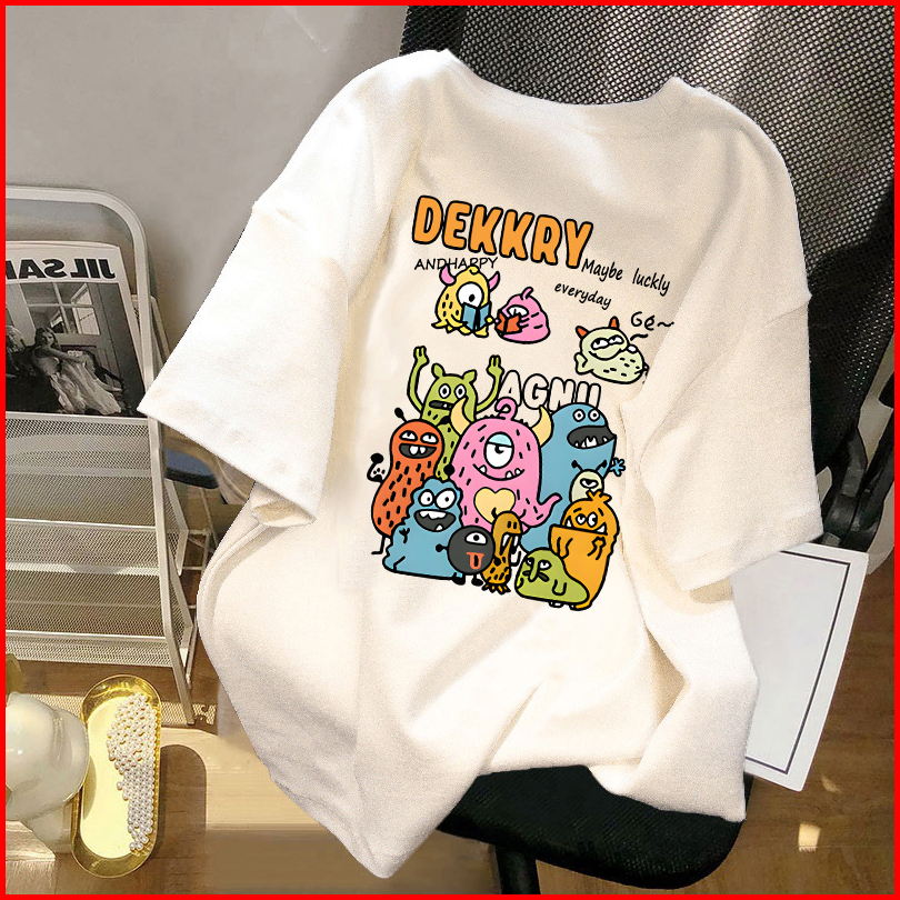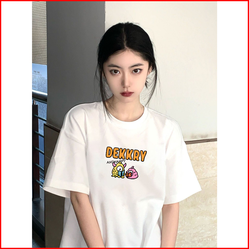 Po Floret T Shirt Oversize Lengan Pendek Kaos American Retro Cartoon Katun Murni Korean Style Wanita Top
