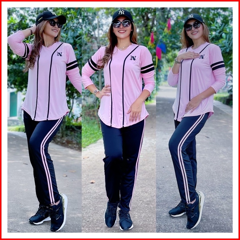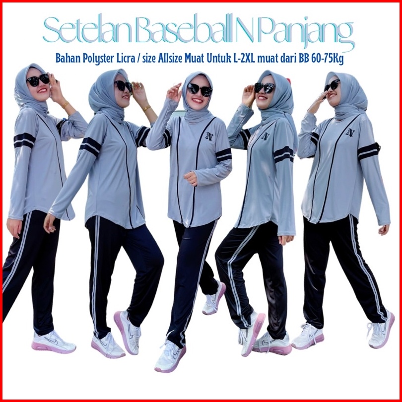 Setelan Baseball N Panjang Muslim Licra 5warna Lengkap Baju Senam Panjang Olahraga Untuk Aerobik Dan Fitness