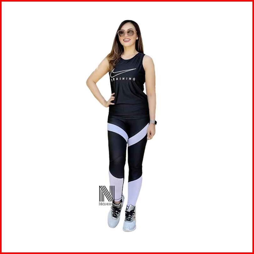 Setelan Baju Senam Olahraga Hitam Nke Training Satu Set Baju Senam Olahraga Zumba Aerobik Fitness