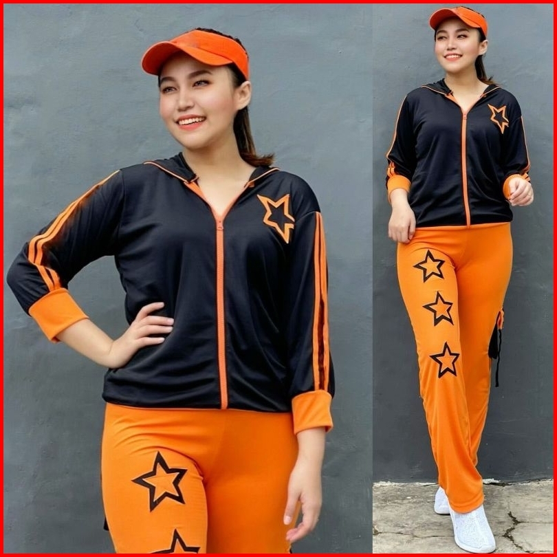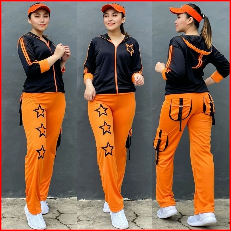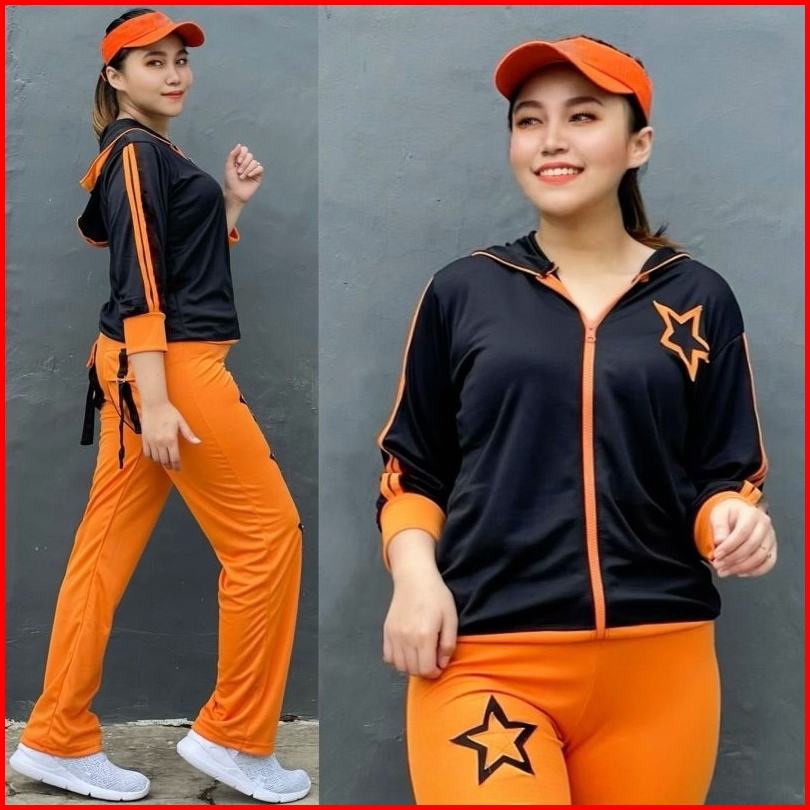 Set Baju Senam Bintang Double Indoor Outdoor Serie Hitam Orange