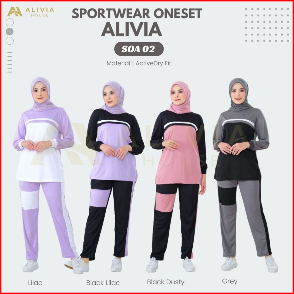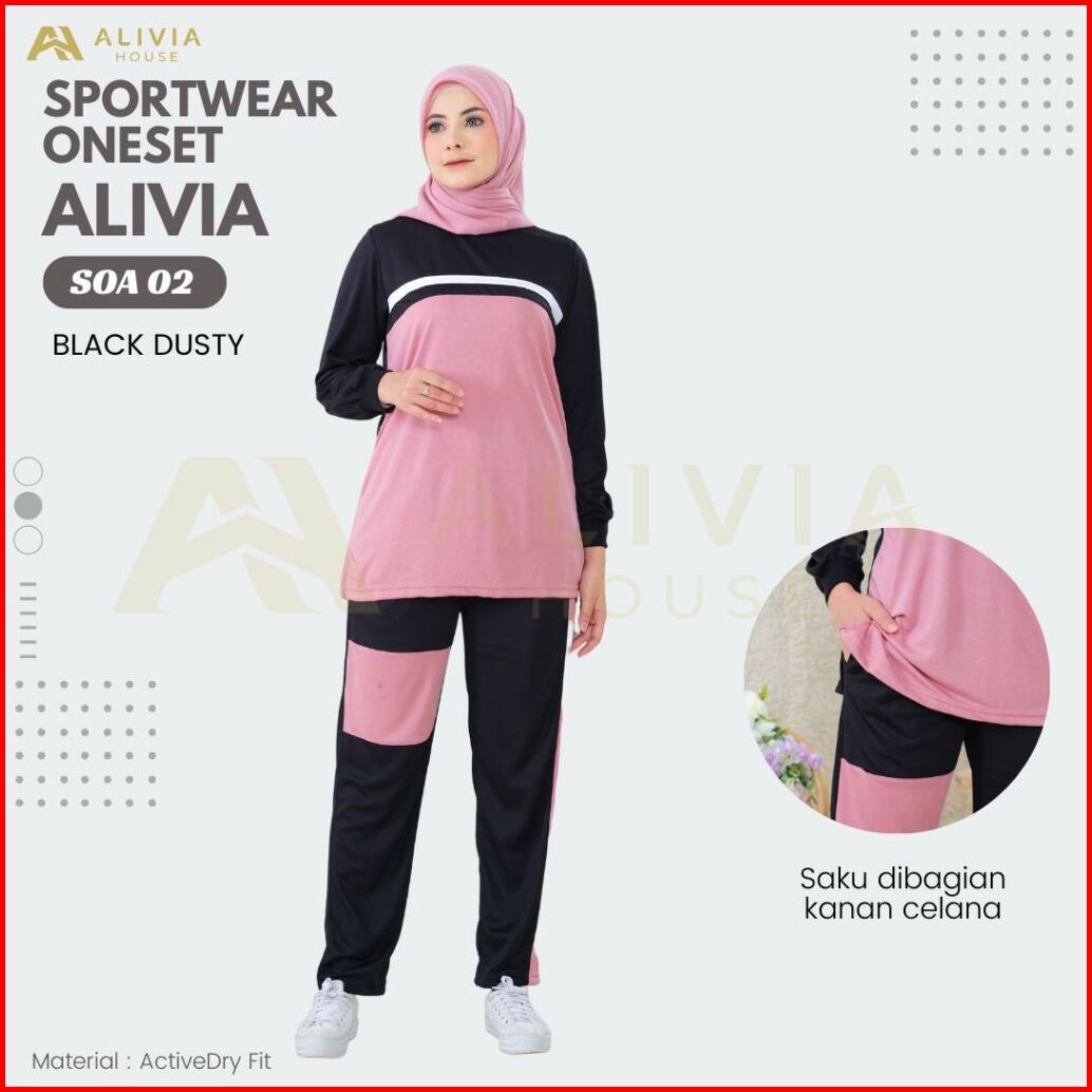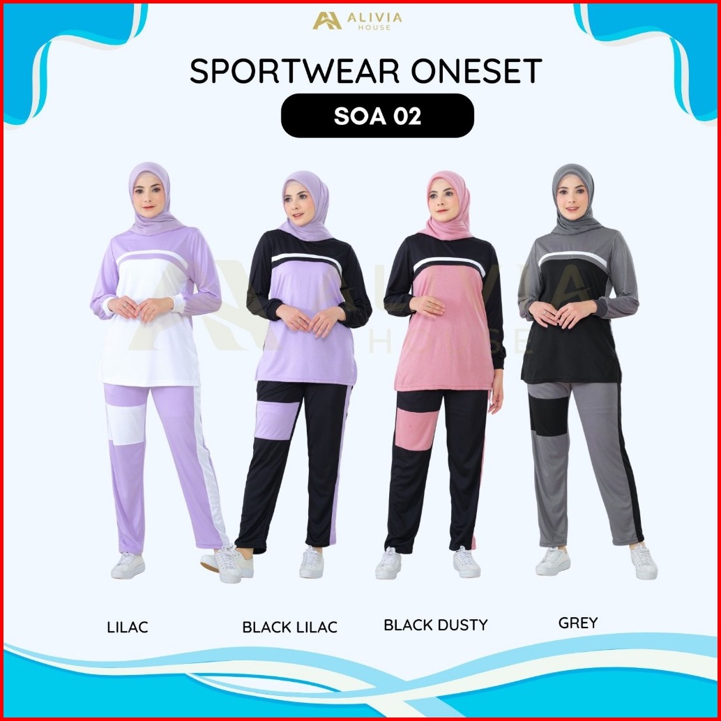 Alivia House - Sportwear Oneset Alivia Soa02 - Setelan Olahraga Wanita - Baju Olahraga Kaos Muslimah - Setelan Senam Sep