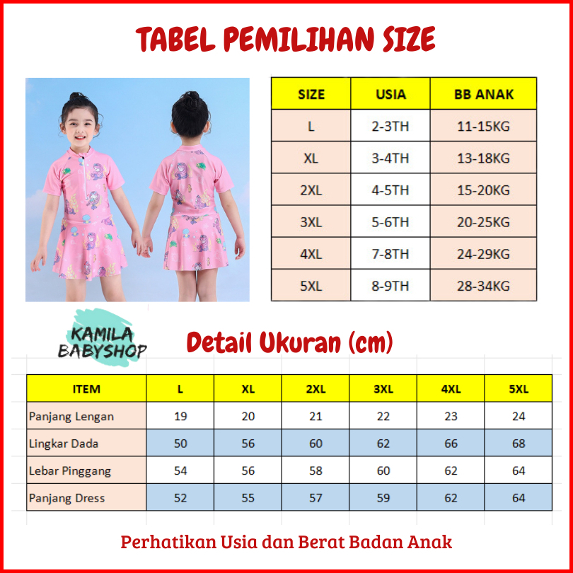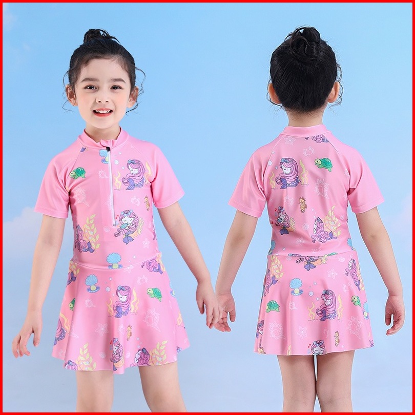 Et37 Baju Renang Anak Perempuan Dress Dengan Celana Pendek Baju Renang Anak Perempuan Dress Mermaid