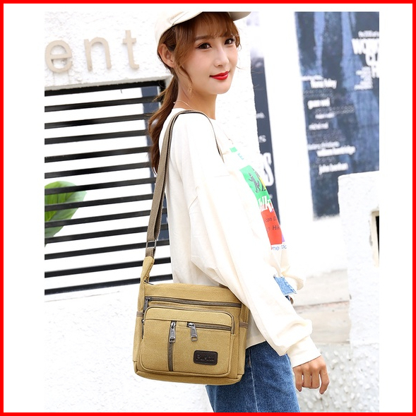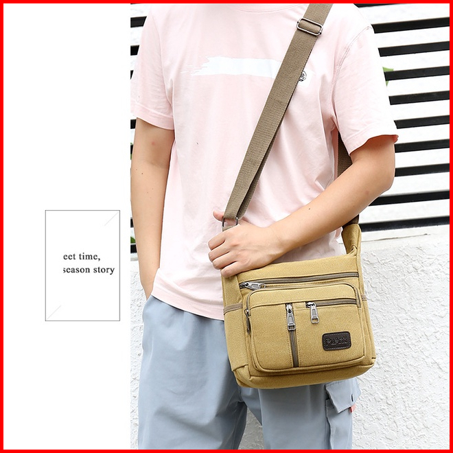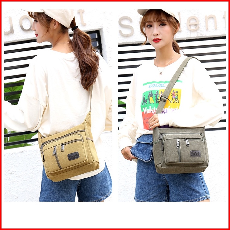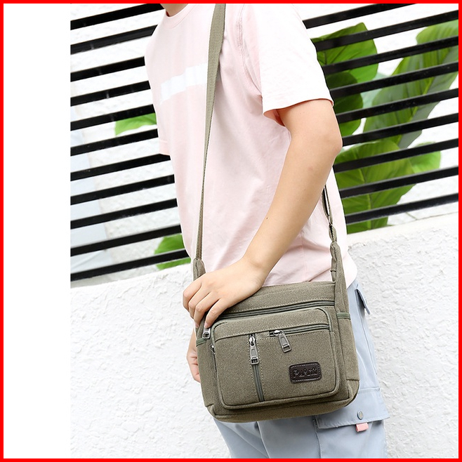 Tas Selempang Kanvas Multi-kompartemen Pria Dan Wanita Tas Selempang Kanvas Tebal Yang Dapat Dipakai Tas Bahu Kasual Bis