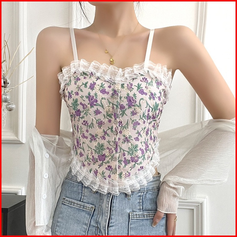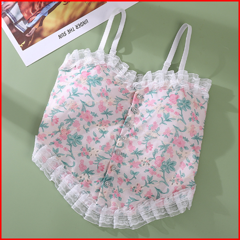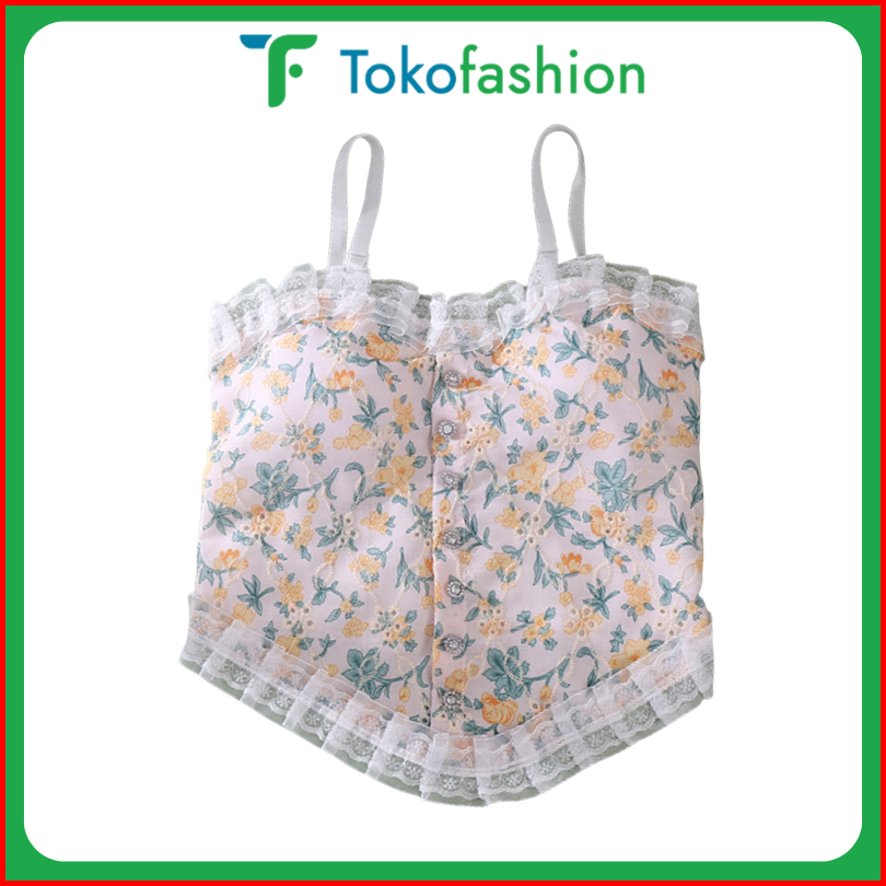 Tokofashion Korean Crop Top Premium Tali Tanktop Bra Wanita Style Rumbai Motif Flower Brk47