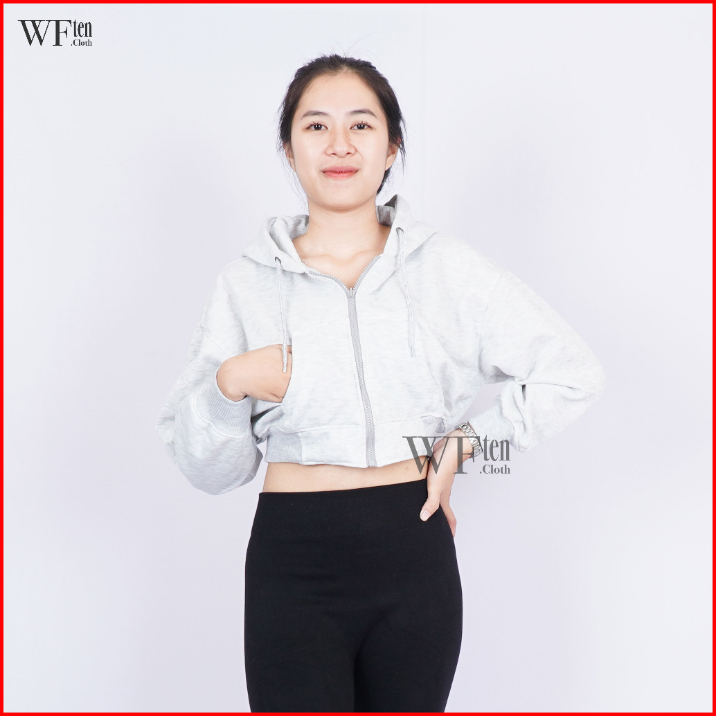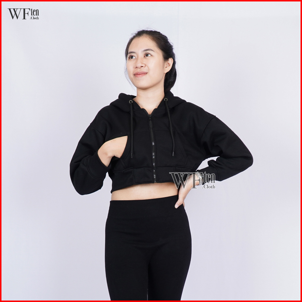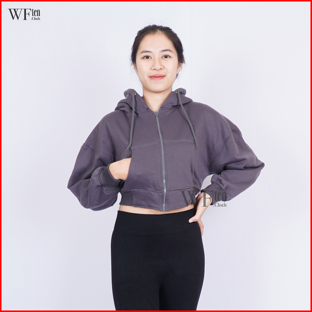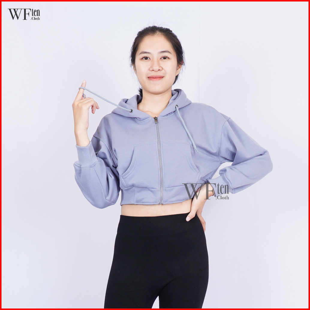 Wften - Hoodie Zipper Crop Premium All Size Fleece Wanita Oversize Sweater Basic Crewneck