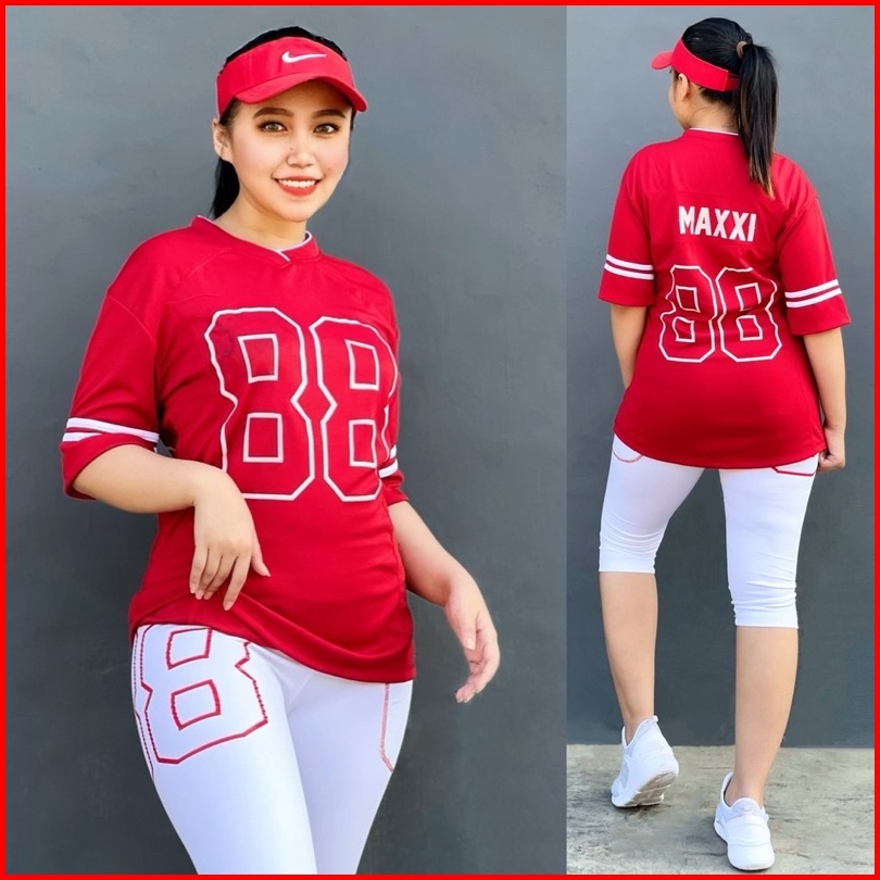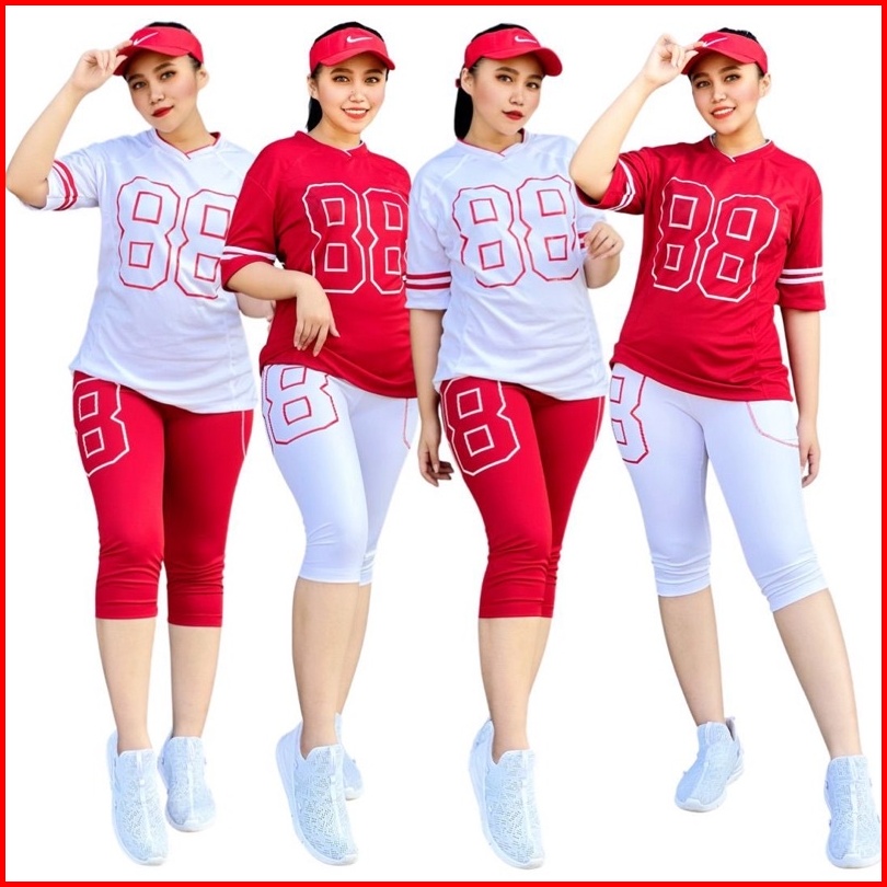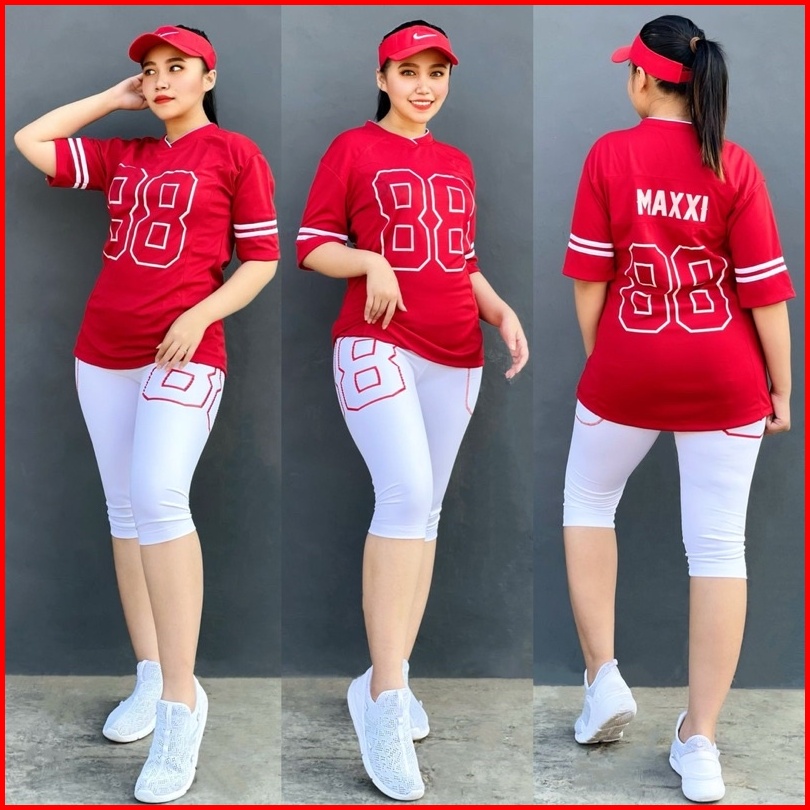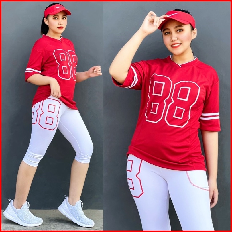 Set 88 Maxxi Series Merah Putih Dan Putih Merah Setelan Training Baju Senam Zumba Aerobic Indoor Outdoor Pendek