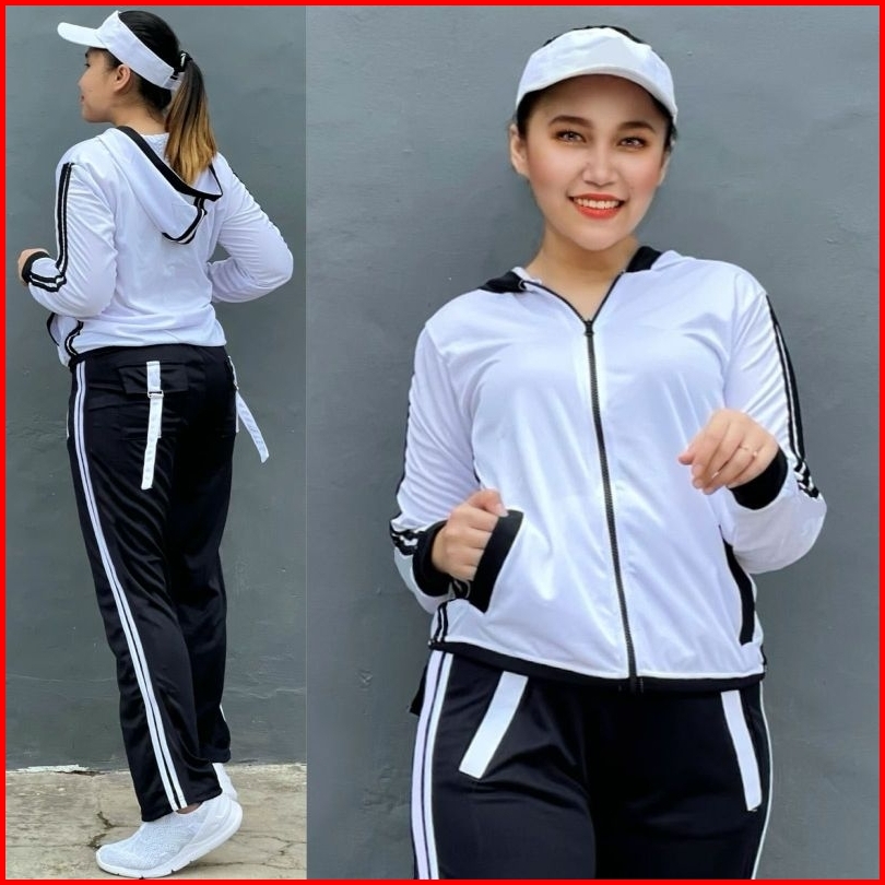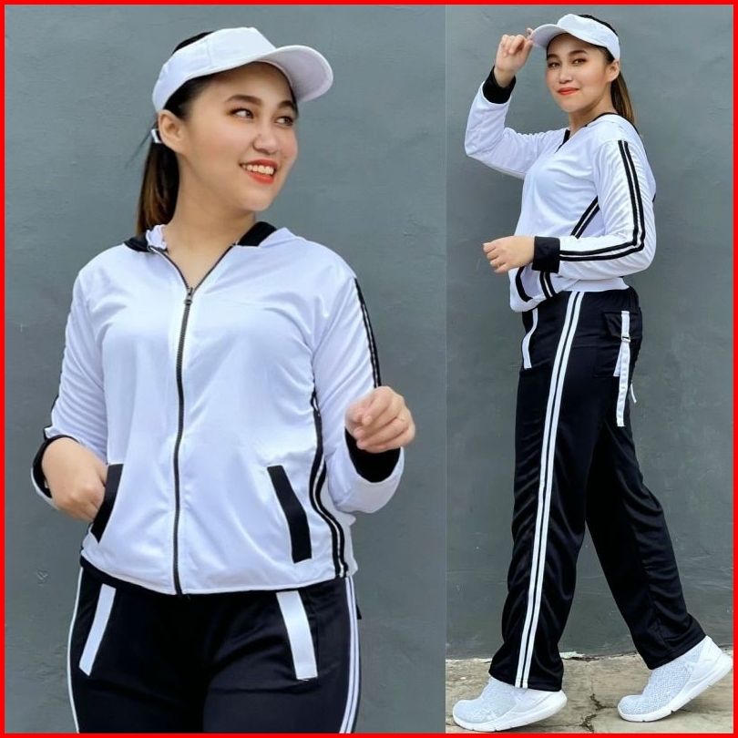 Stelan Baju Senam Indoor Outdoor Putih Hitam