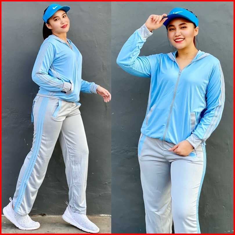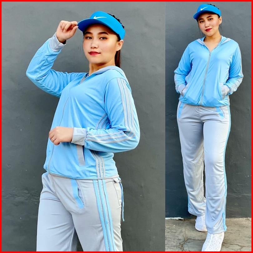 Stelan Baju Senam Indoor Outdoor Biru Muda Abu