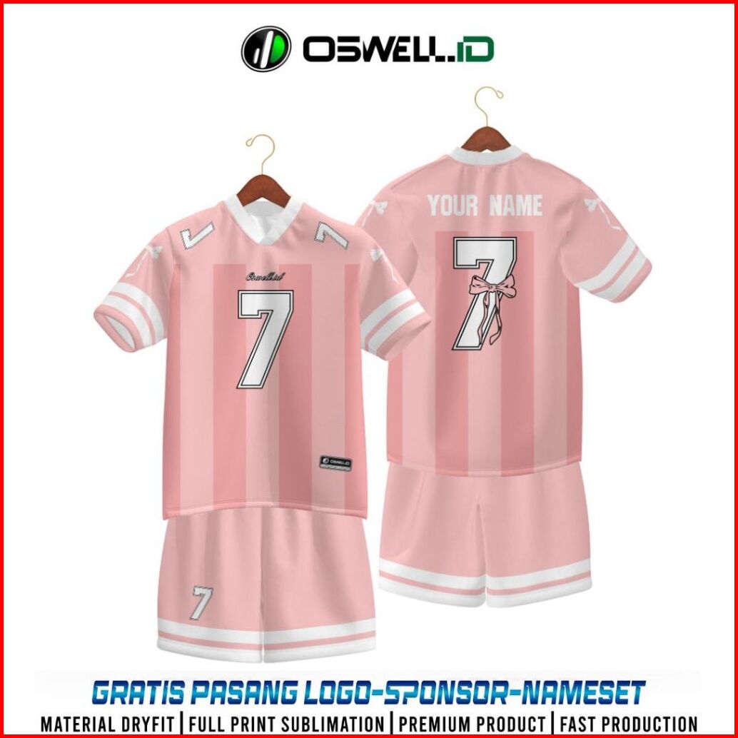 Jersey Coqueete Ribbon Korea Futsal Voly Tenis Pink And White Costume Gratis Nama Dan Nomor Punggung